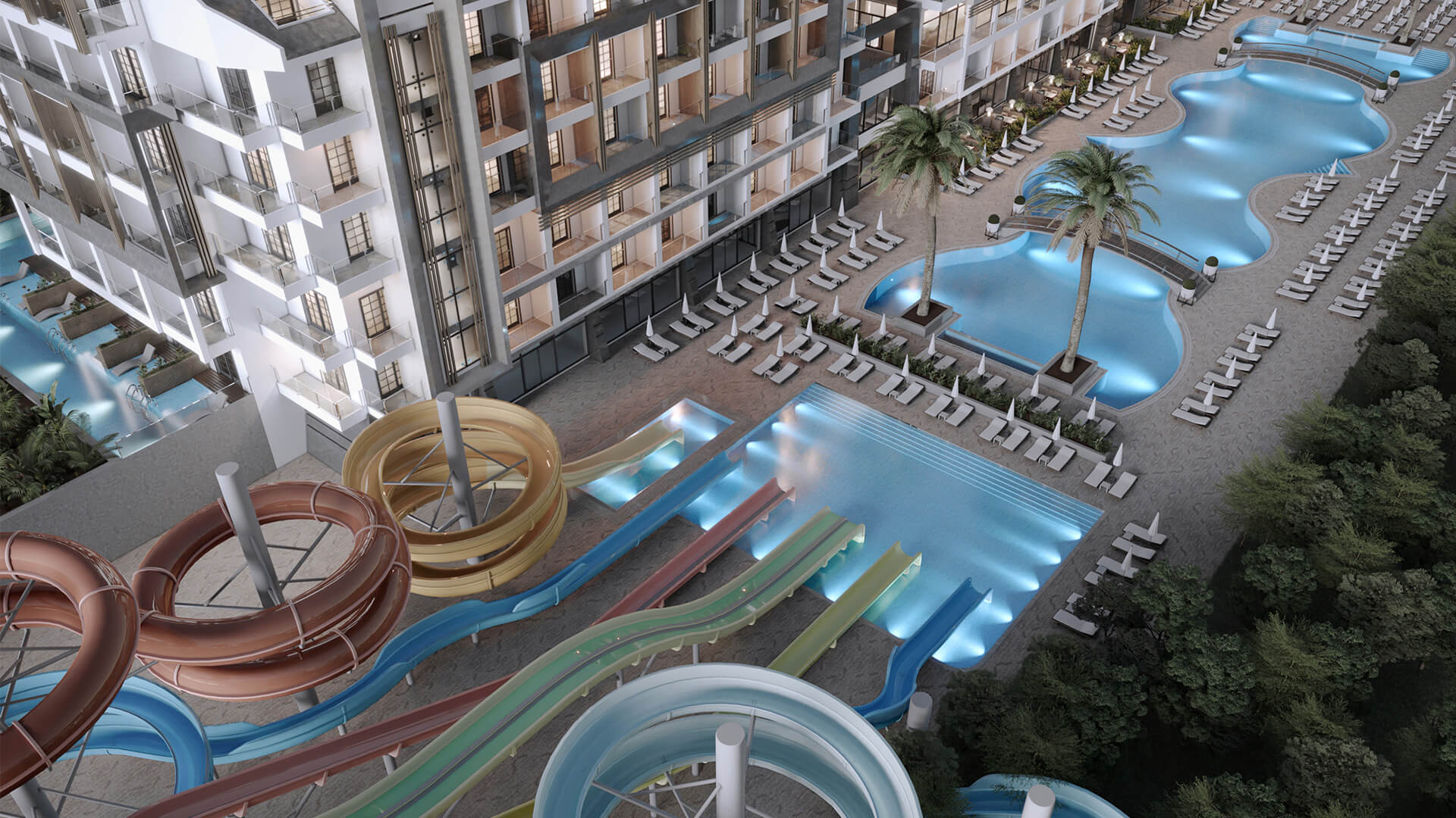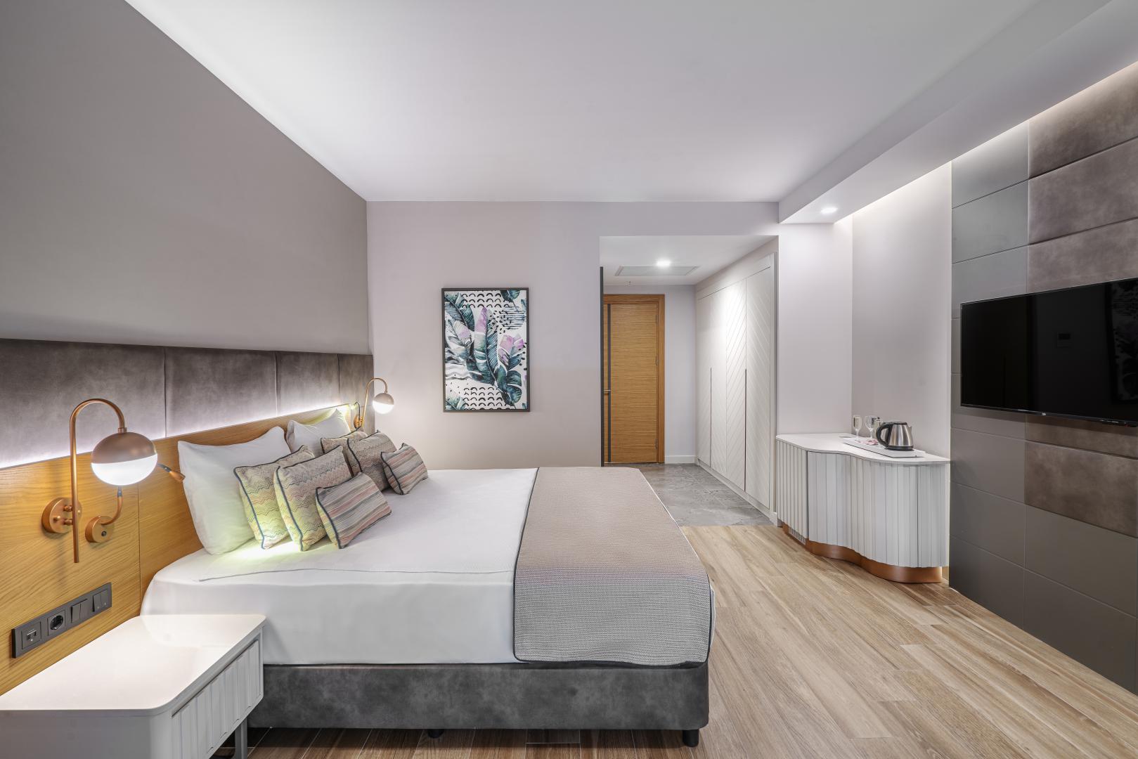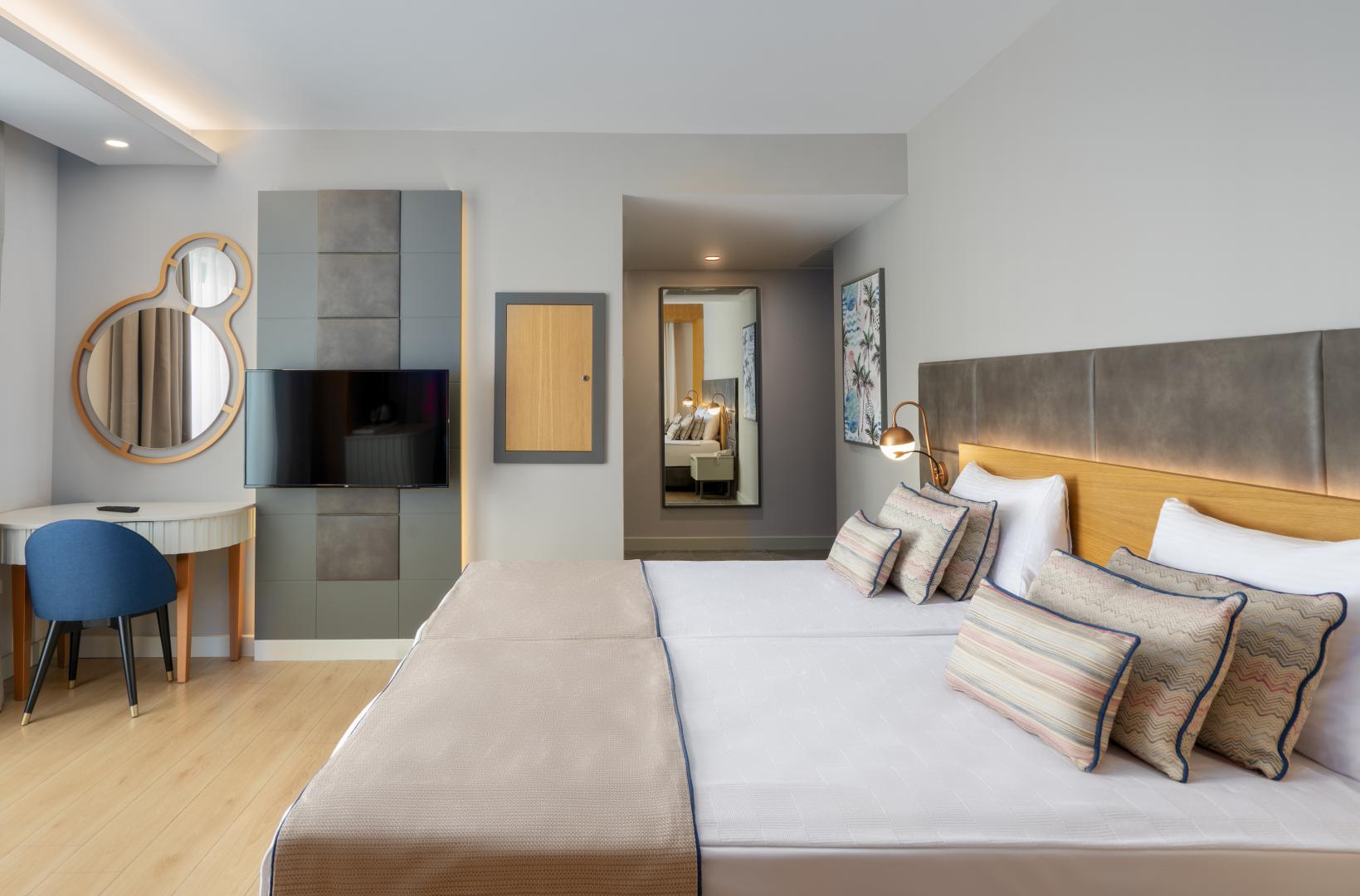 Хотелът разполага с 272 стаи, разположени в една 8 етажна сграда. Стаи: Standart double (32,5 м²),Standart swim up (32,5 м²), Family (65 м²). Всички стаи са оборудвани с: климатик, сателитна телевизия, телефон, баня с душ/вана, сешоар, мини бар (безплатен), сет за кафе/чай, сейф, Wi-Fi, балкон. Почистване на стаите - всеки ден, смяна на бельото - 3 пъти седмично.