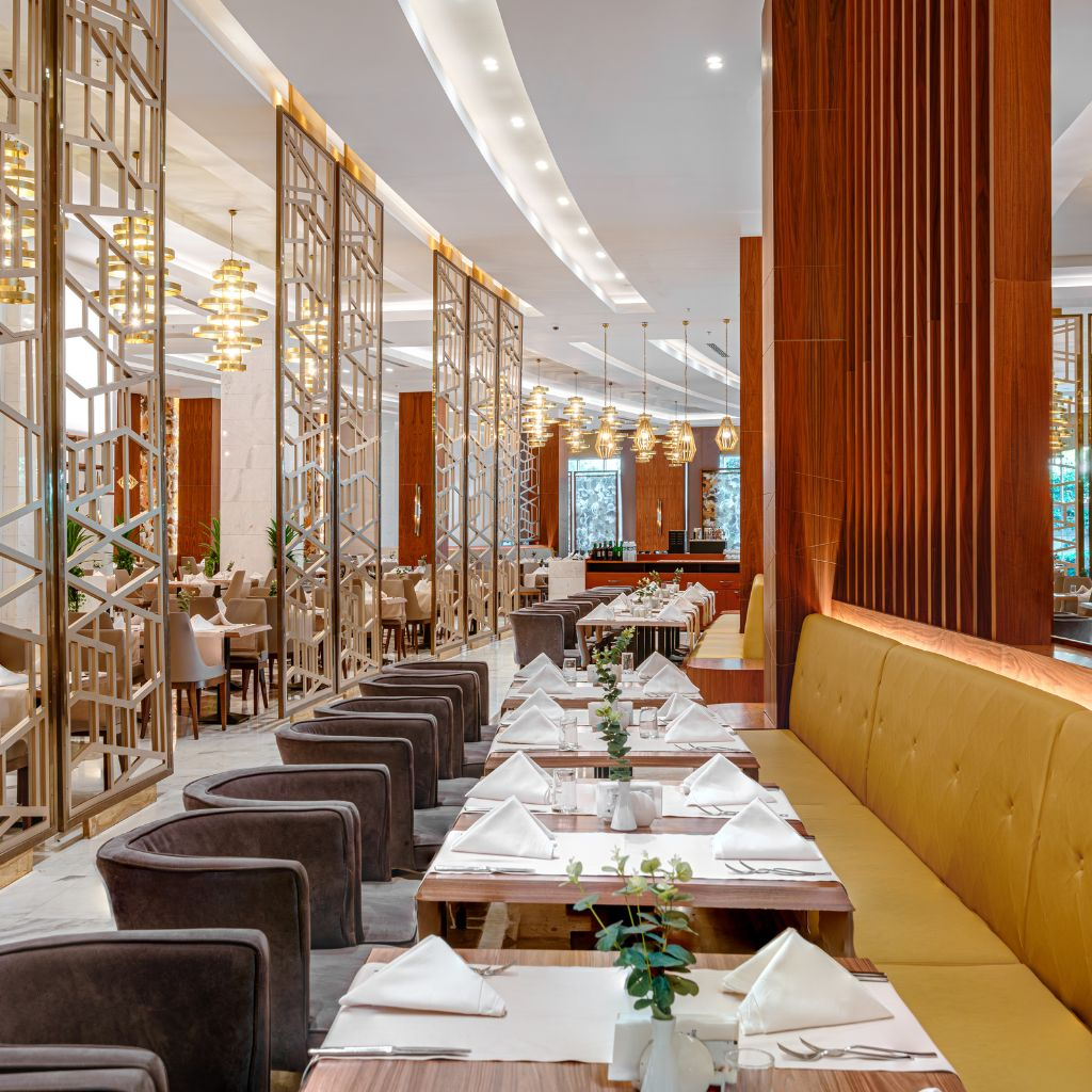 Основен ресторант, 4 а-ла-карт ресторанта (средиземноморски, турски, суши, стек – 1 безплатно посещение на 1 от ресторантите при минимум 7 нощувки, с изключение на стек ресторанта), италиански снек ресторант, сладкарница, гьозлеме, 9 бара, открит и закрит басейн, аквапарк, приключенски парк, кино, амфитеатър, СПА център, диско бар, магазини, 3 конферентни зали.