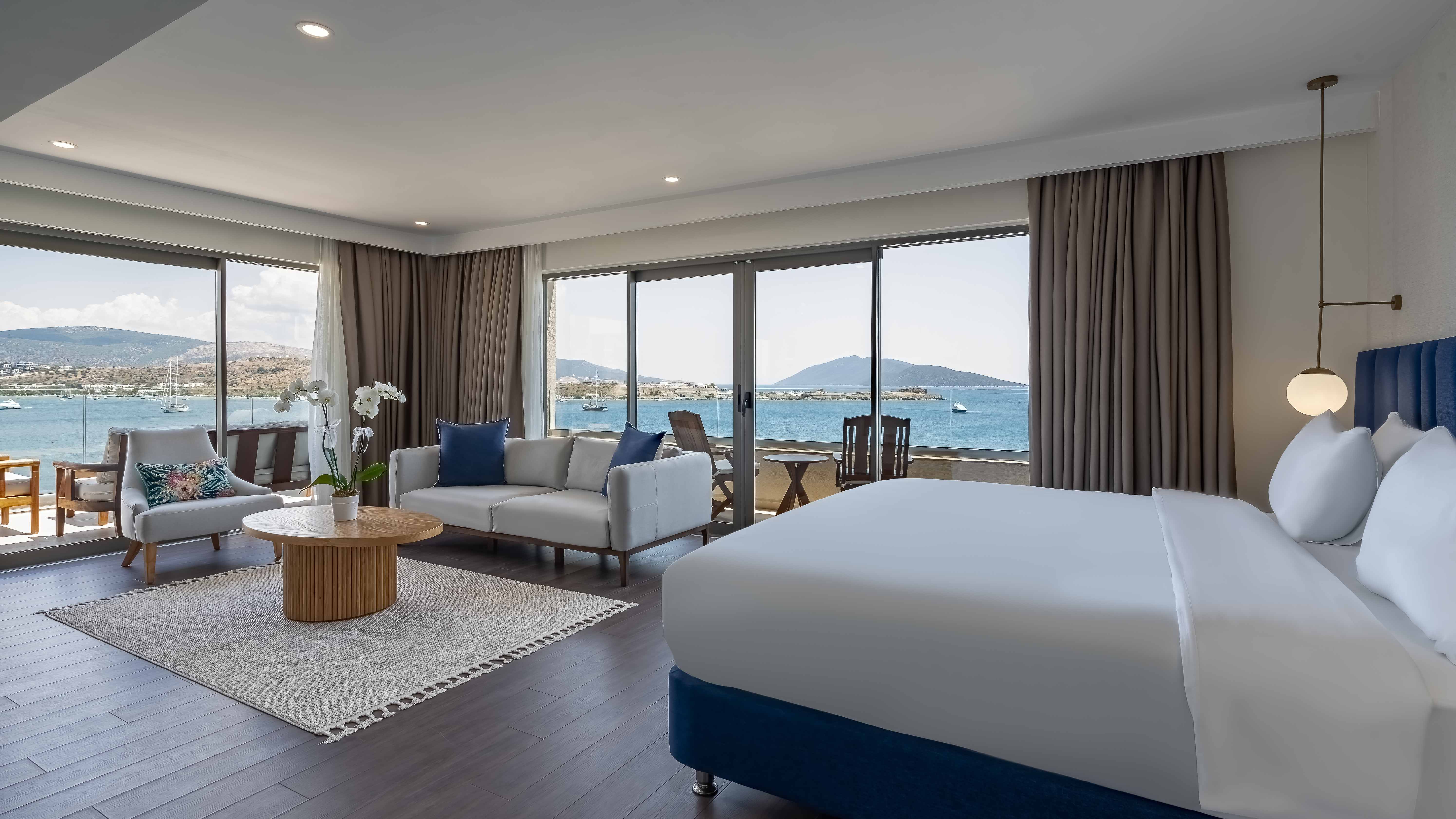 Стаи: Standard room land view (1 спалня, 1 баня, зона за сядане, изглед суша - 25 М²), Standard Partial Sea View (1 спалня, 1 единично легло, 1 баня, частичен изглед море - 26 - 30 М²), Superior Room Sea View (1 спалня, 1 баня, зона за сядане, изглед море - 26 - 30 М²), Serenity Room (1 спалня, 1 баня, зона за сядане, голяма тераса с шезлонги, изглед море - 26 - 30 М²), Family Room Non View Eco (1 спалня, 1 баня, зона за сядане с разтегателен диван, изглед суша - 52 М²), Grand deluxe room (1 спалня, 1 баня, зона за сядане, гардеробна, голяма тераса, изглед море - 65 М²), Family room land view (2 спални, 2 бани, зона за сядане, изглед суша - 65 М²), Family room sea view (2 спални, 2 бани, зона за сядане, изглед море - 65 М²), Family Suite (2 спални, 2 бани, зона за сядане, изглед море - 65 М²), Royal suite room (2 спални, 2 бани, 1 хол, частен басейн, изглед море - 105 М²),