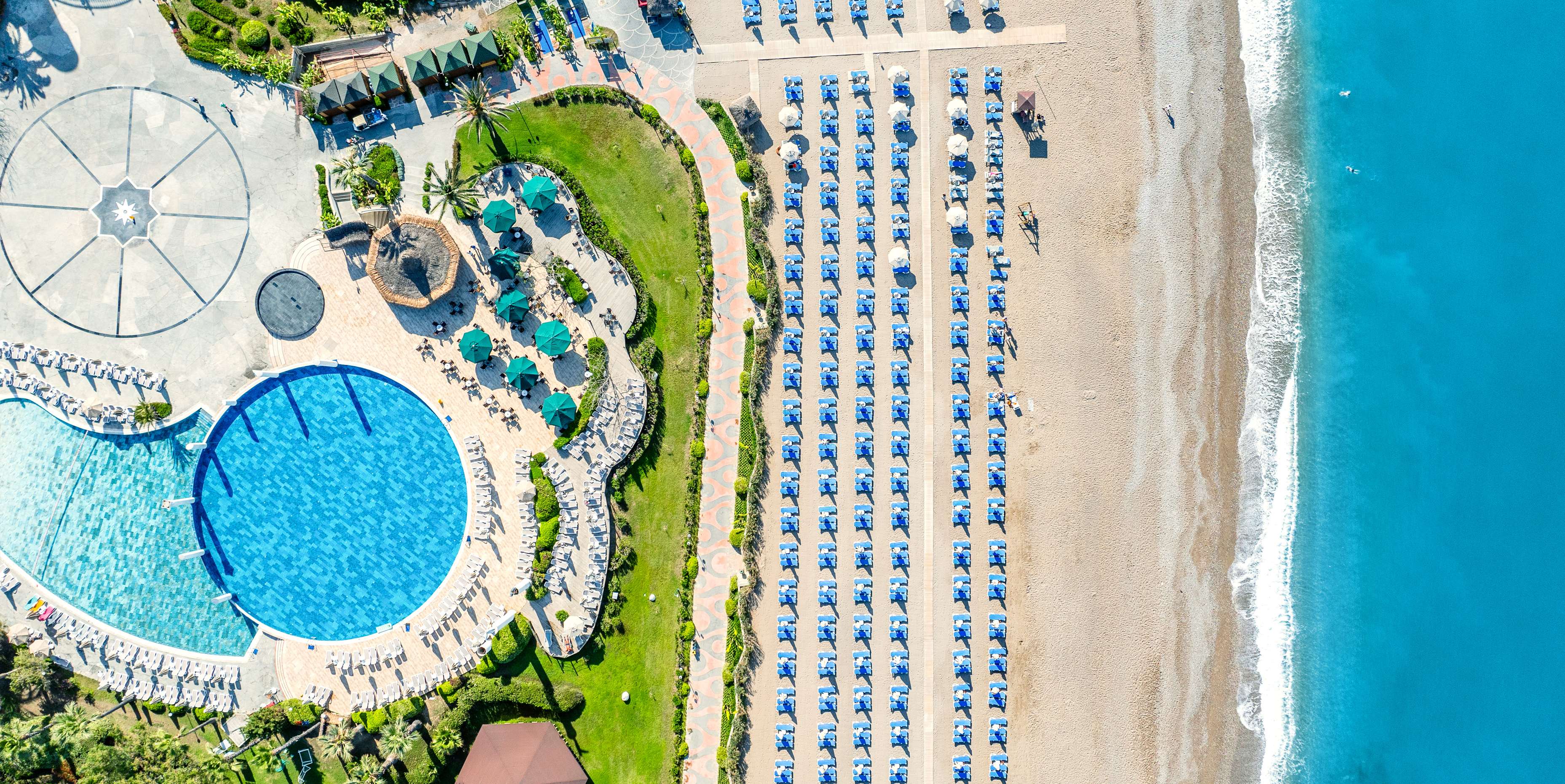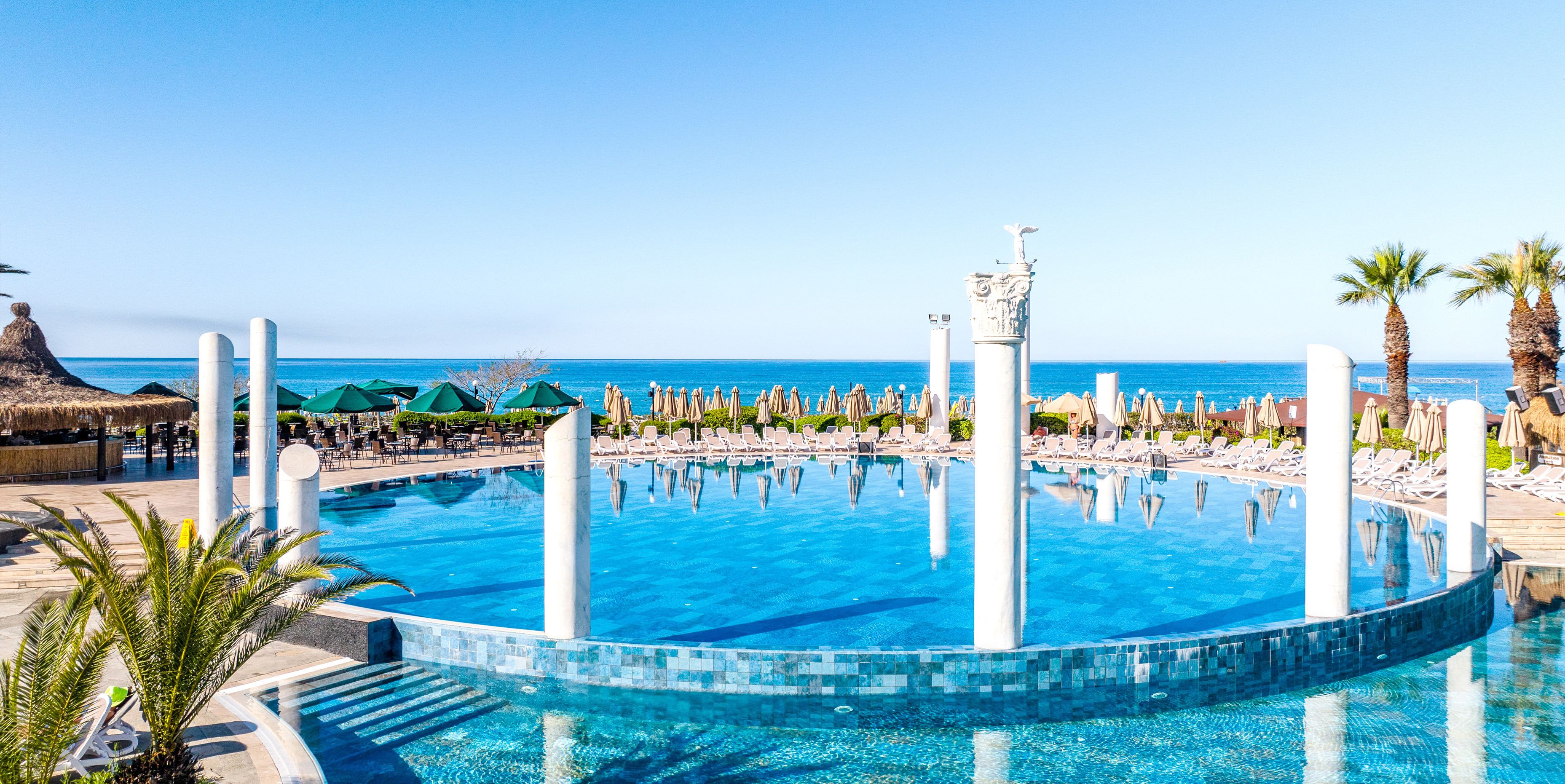 основен ресторант, 12 а-ла-карт ресторанта, 9 бара, 5 басейна, 3 вътрешни басейна, аквапарк с 11 пързалки, дискотека, СПА център, турска баня, сауна(био, руска, класическа), спортен център (футбол, тенис, голф, езда), конферентна зала, амфитеатър, анимация, WI-FI. Безплатни услуги: турска баня, сауна, фрешове на закуска, анимация, тенис на маса, дартс. Платени услуги: тенис корт, телефон и факс, магазини, билярд, моторни водни спортове, За децата: детски басейн, 6 детски пързалки, анимация, мини клуб (4-12г.), мини диско, тийн клуб(13-16г.). Плаж: собствен, пясъчен. Чадъри и шезлонги на плажа и басейна - безплатно.