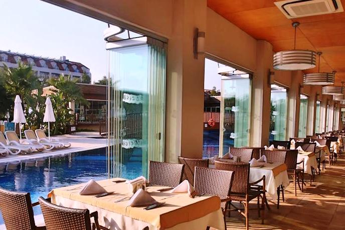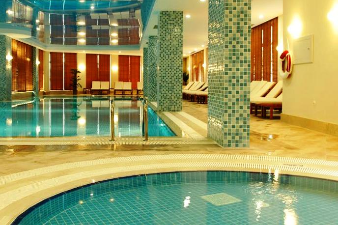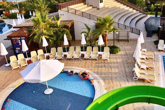 Хотелът разполага с открити и закрити басейни, които са специално предназначени за всяка възрастова група. 2 басейна за деца (30 и 60 кв.м), основен басейн, който включва 3 пързалки за възрастни и 2 за деца и още два други басейна. Шикозни и удобни шезлонги, плажни чадъри, душове и съблекални са разположени удобно, в непосредствена близост до басейните.