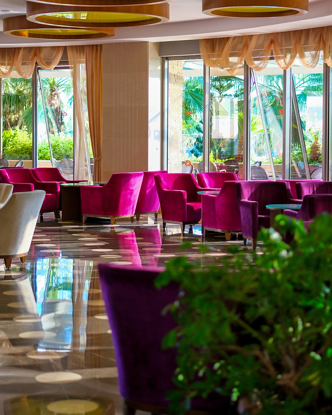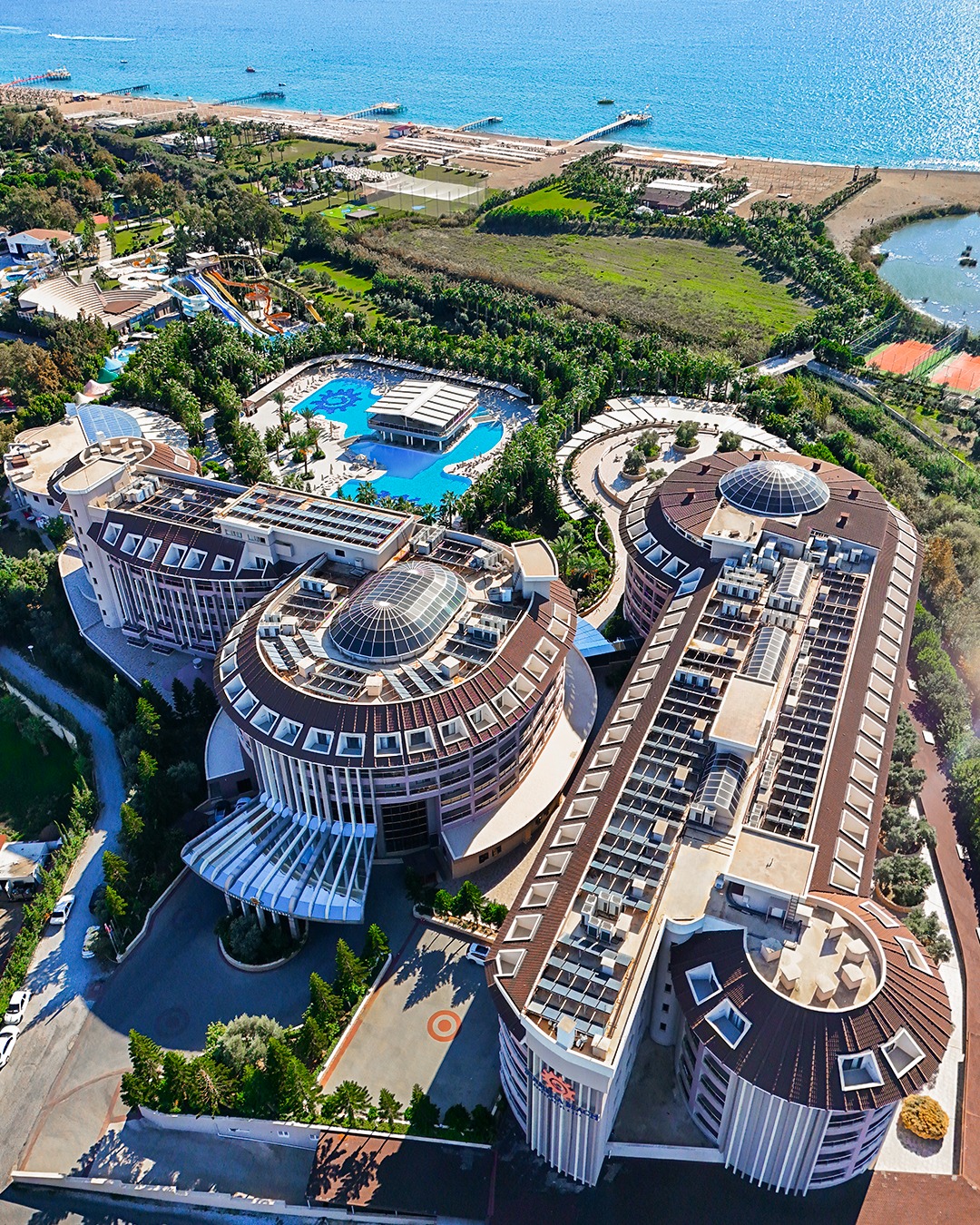 Основен ресторант, 4 а-ла-карт ресторанта (турски, италиански, китайски – 1 безплатно посещение на 1 от ресторантите при минимум 7 нощувки, с предварителна резервация; рибен - срещу заплащане, с предварителна резервация), 2 снек ресторанта, 5 бара, 3 открити и 1 закрит басейн, аквапарк с 6 водни пързалки за възрастни и 2 за възрастни, СПА център, магазини, 1 конферентна зала.