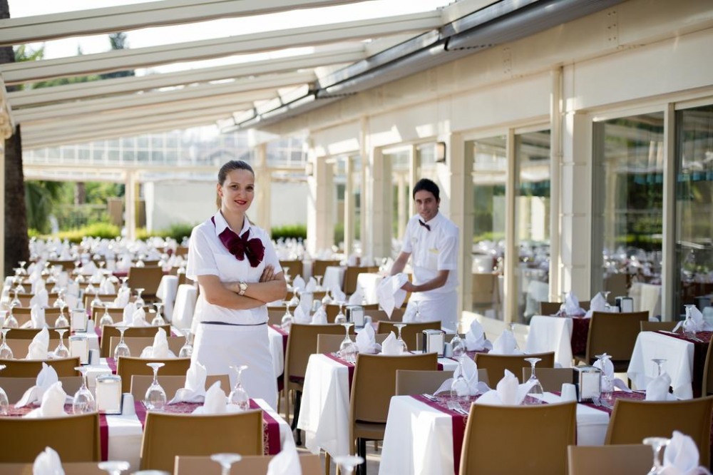 Хотелът разполага с основен ресторант, 3 а-ла-карт ресторанта (италиански, османски и средиземноморски- 1 посещение в седмицата), 3 бара, плувен басейн, вътрешен басейн, водни пързалки, СПА център, сауна, парна баня, турска баня, масажи, анимация, тенис на корт, тенис на маса, аеробика, водни спортове, дартс, WI-FI. За децата: детски басейн(външен и вътрешен), детски водни пързалки, мини клуб.