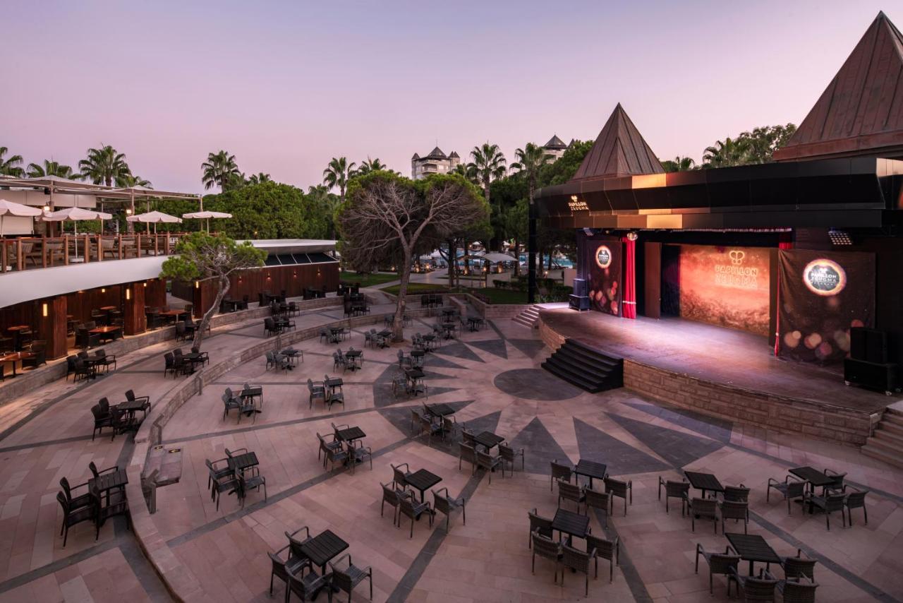 Основен ресторант, 24/7 интернационален ресторант, 4 а-ла-карт ресторанта (турски, италиански, азиатски, морски – с предварителна резервация, срещу заплащане), гурме улица, сладкарница, пекарна, бирария, бургер хаус, ресторант само за възрастни Adults Only (16+), 10 бара, наргиле бар (срещу заплащане), лаундж за ранно настаняване и късно освобождаване, 9 открити (3 от които отопляеми според метеорологичните условия) и 1 закрит басейн (отопляем през зимния сезон), аквапарк с 4 водни пързалки, СПА център, магазини, 8 конферентни зали, паркинг.