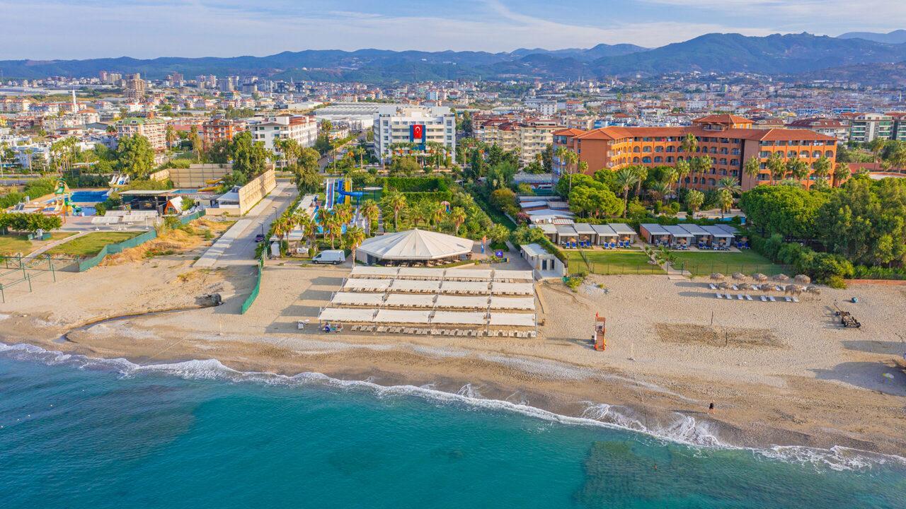Хотелът се намира на разстояние от 110 км. от летището в Анталия, разположен в Конаклъ, на 15км. от Алания.