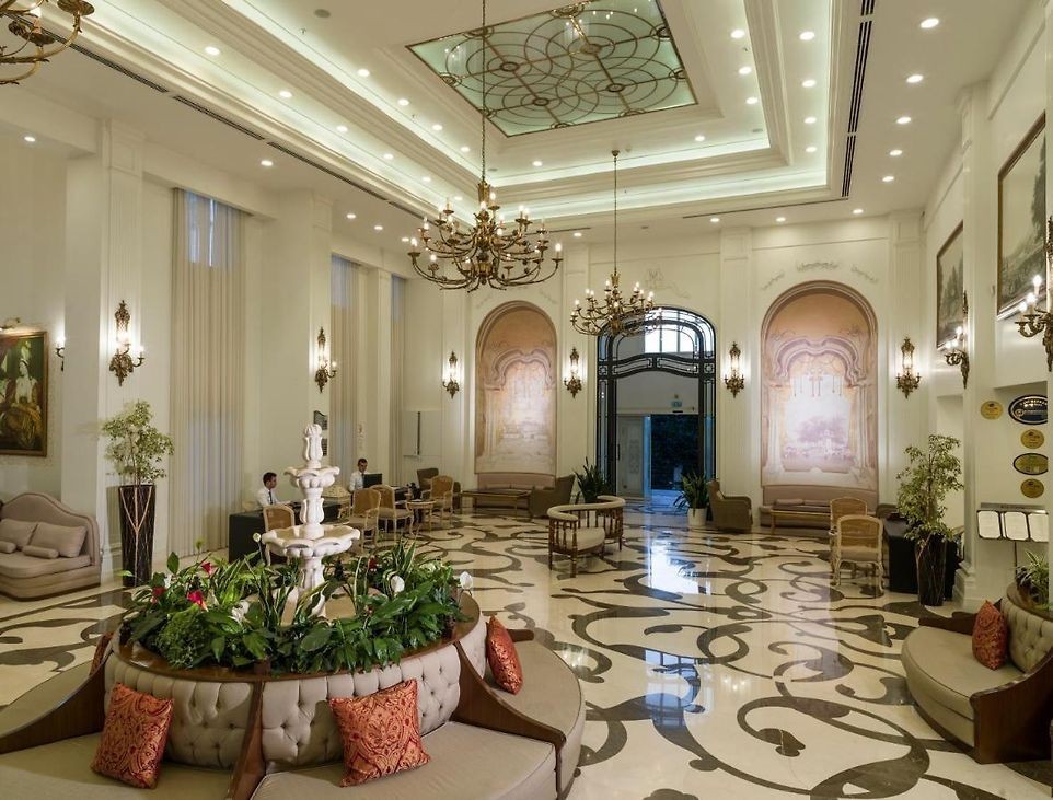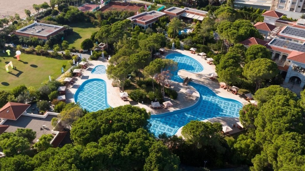 На територията на хотела: Хотелът предлага широка гама от услуги за комфортен престой, включително диетични и вегетариански менюта, фризьорски салон, аквапарк с 15 водни пързалки, барове, конферентни зали за 12-250 души, безплатни хавлиени кърпи при басейна, ресторанти с основно, диетично и вегетарианско хранене, пералня, а ла карт ресторанти, безплатен Wi-Fi в целия имот, лекарски кабинет, магазини, открит басейн, отопляем басейн и басейн за лечение терапия.