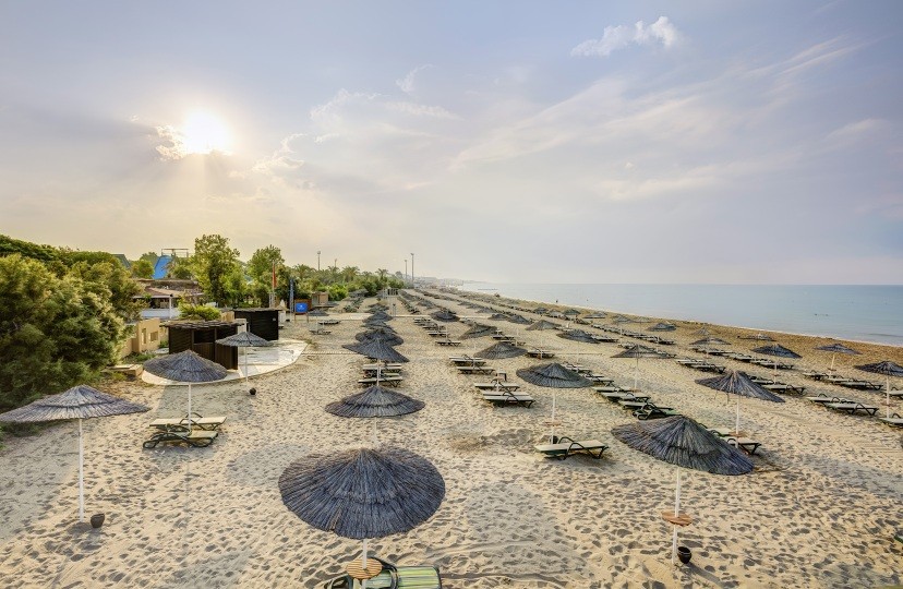 Плаж: Собствен пясъчно-чакълест плаж в непосредствена близост от хотела. Дължината на плажа е 650 м. Плажните кърпи, чадъри, матраци и шезлонги са безплатни.