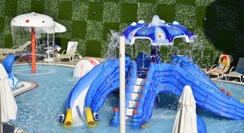 За децата: За децата има водни пързалки, детска площадка, вътрешен и външен детски басейн, както и детски клуб за деца от 4 до 12 години. Предлагат се бебешки колички срещу допълнително заплащане.