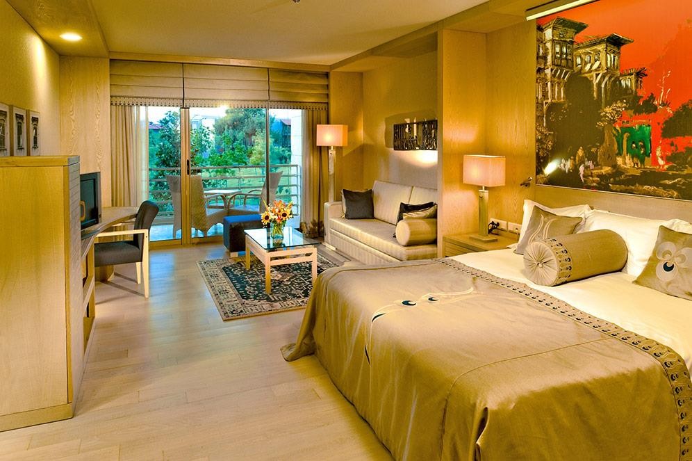 В стаите: Хотелските стаи са оборудвани със сейф, минибар с напитки, който се зарежда ежедневно, и централна климатизация. Спалното бельо се сменя три пъти седмично, а почистването се извършва ежедневно. Стаята разполага още с телефон, сешоар, везни, халат и телевизор. За гостите на вили и апартаменти с двойно легло King, рум-сървисът е на разположение 24 часа в денонощието, а за останалите гости - от 23:00 до 07:00 часа. При пристигане гостите ще бъдат посрещнати с кошница с плодове.