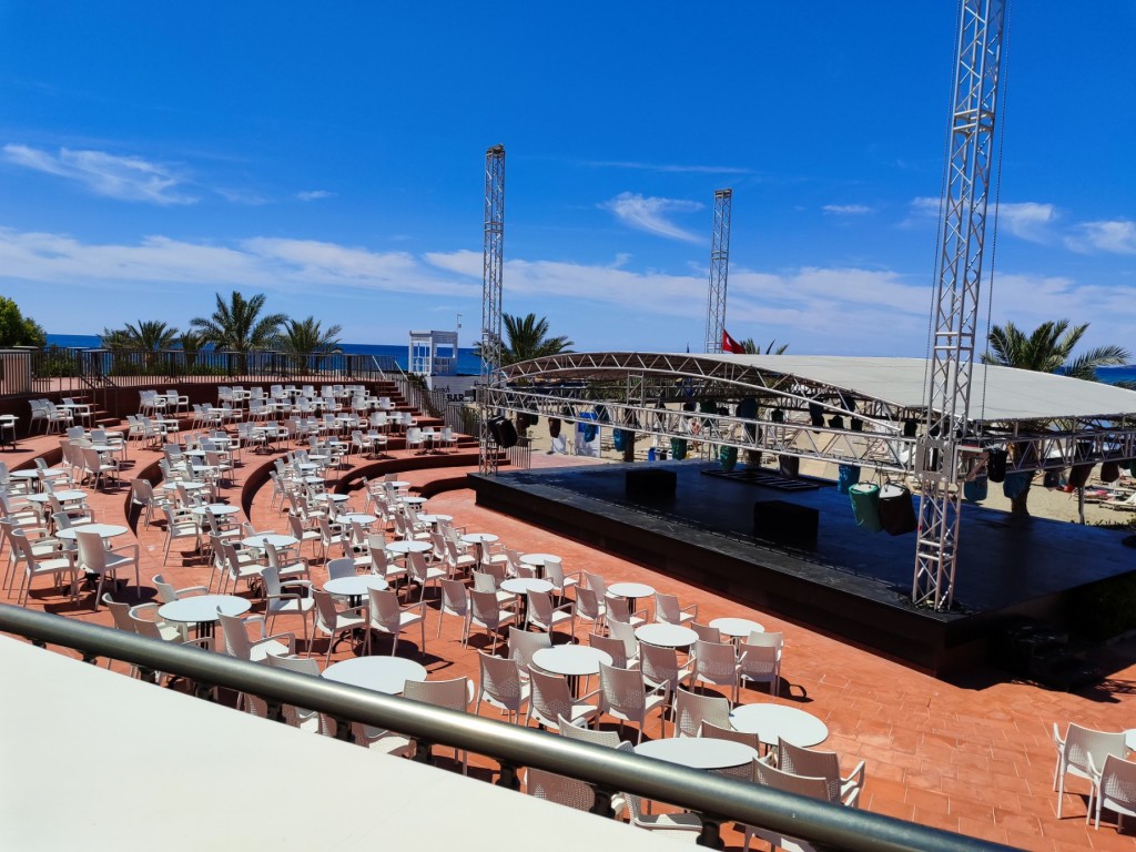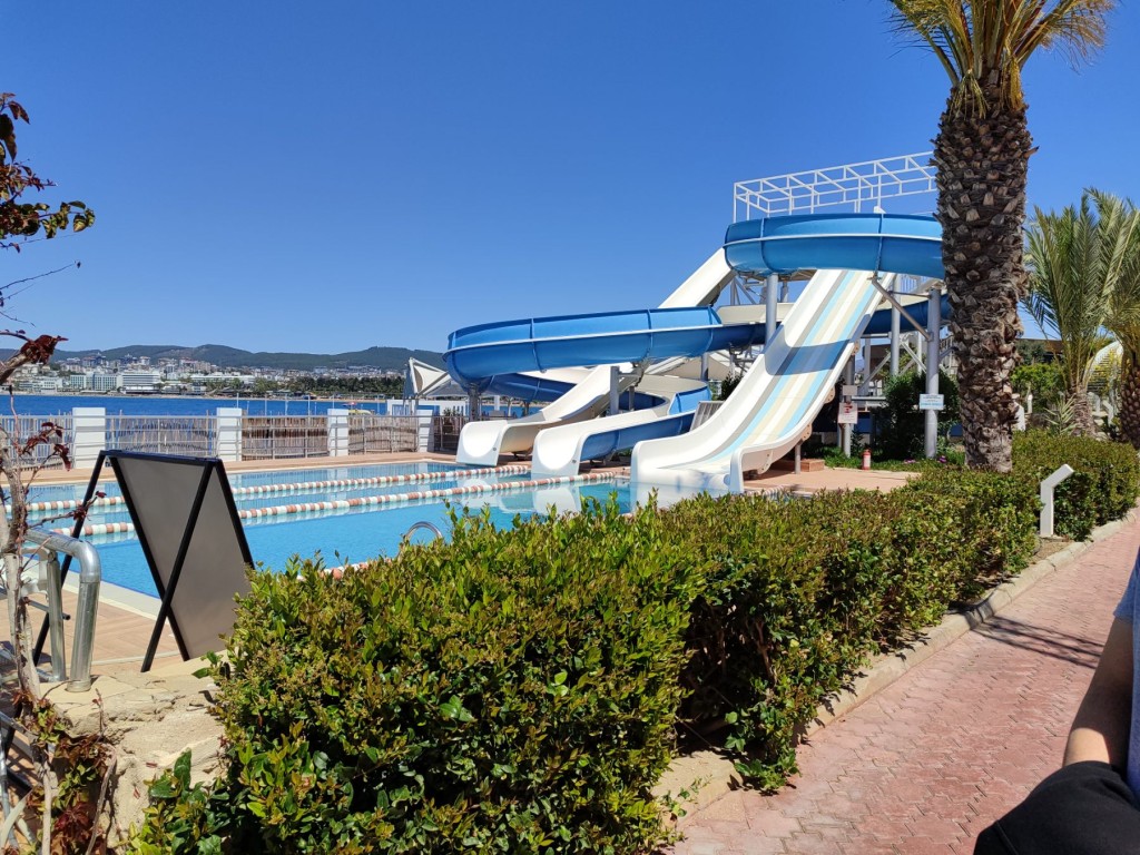 На територията на хотела: Основен ресторант със закрита и отркита част, открит а-ла-карт ресторант (веднъж беплатно посещение за седмичен престой, с предварителна резервация), денонощен лоби бар, бар край басейна, снек бар, 7 секции за „street food”, сладкарница, Starbucks кафене на входа на хотела, диско бар, вътрешен и външен басейн, басейн с водни пързалки, фитнес зала - безплатно, СПА център (турска баня и сауна – безплатно), амфитеатър, WiFi интернет на цялата територия на хотела.