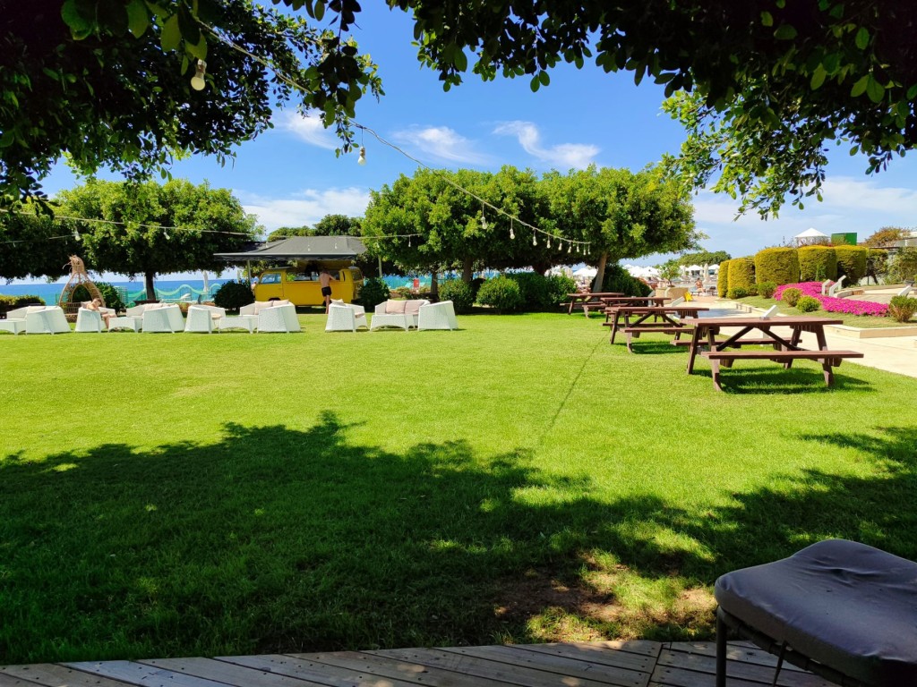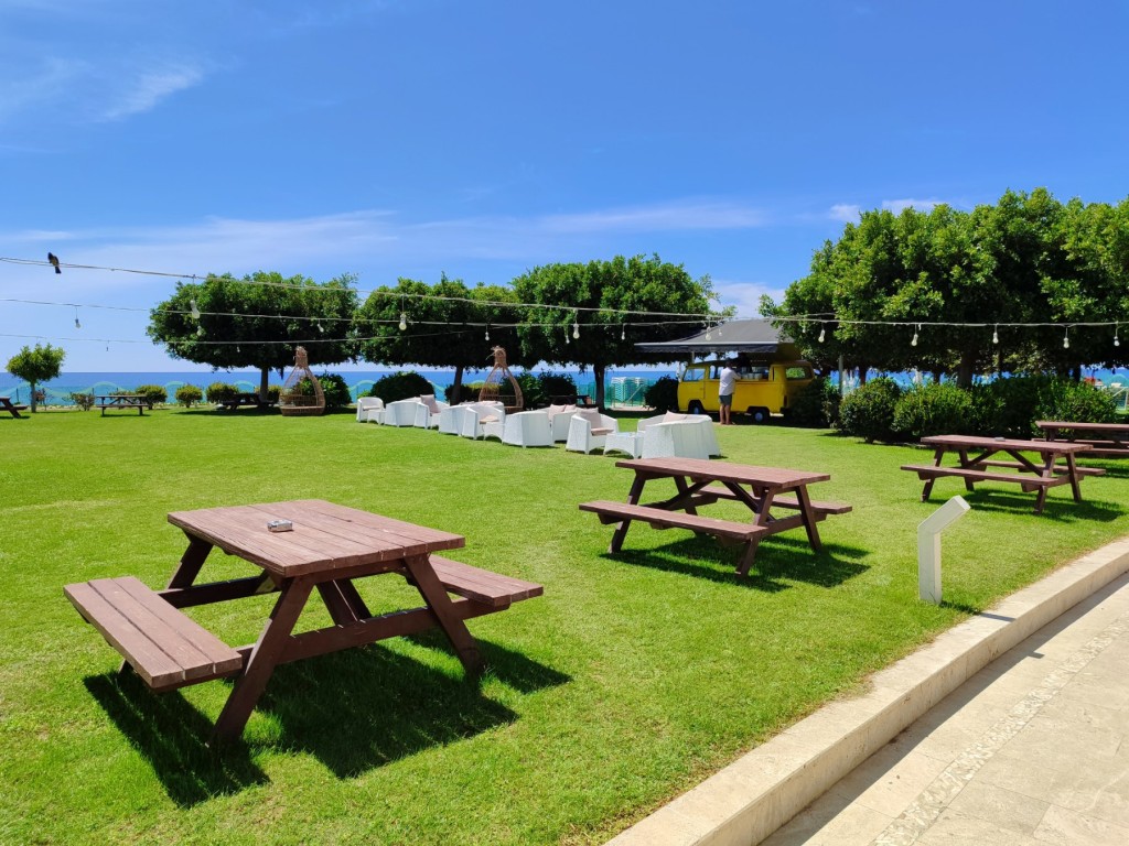 Плаж: Собствен пясъчен, на места с малки камъчета, осигурени безплатни чадъри и шезлонги. Бар на плажа.