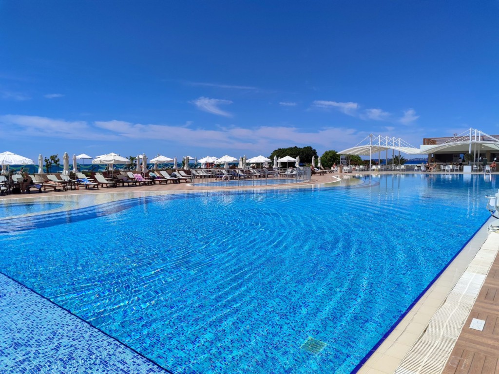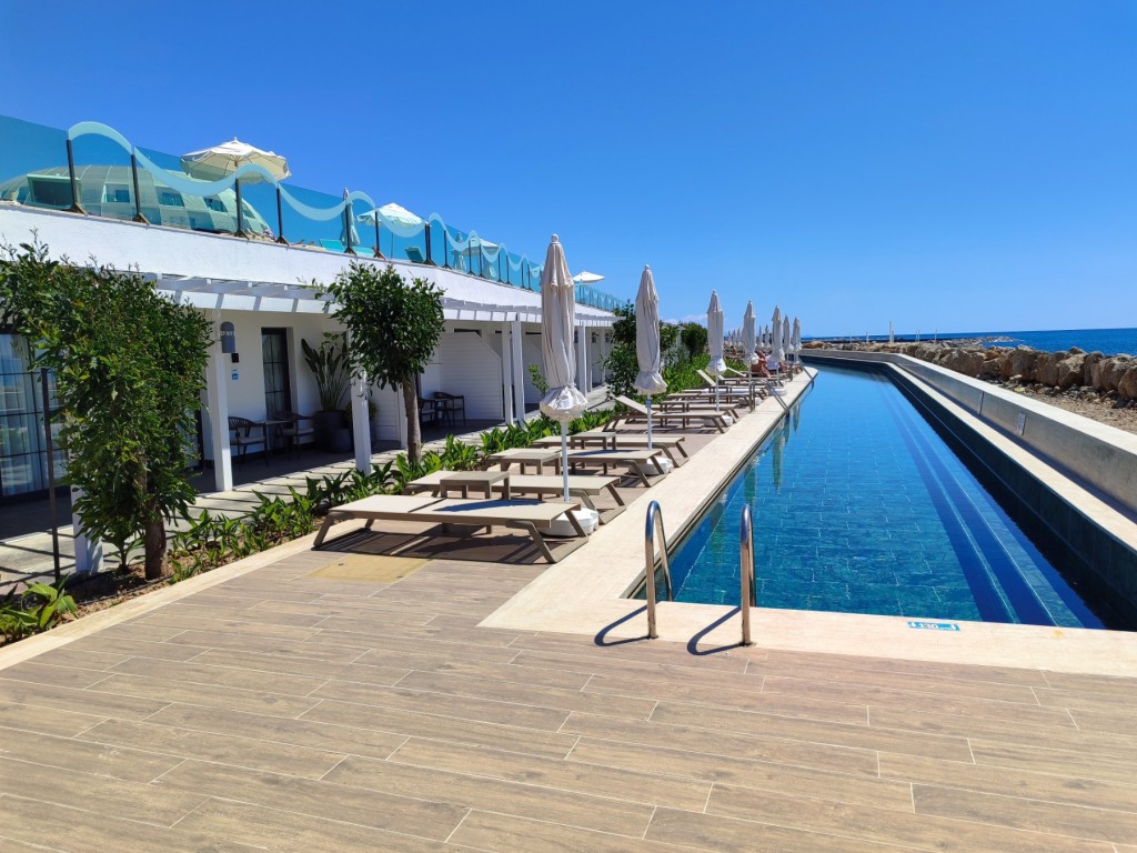В стаите: Хотелът разполага със 157 Deluxe стаи, 43 swim-up стаи (16+) и 2 стаи за инвалиди. Заради атрактивната си форма почти всички стаи имат изглед към морето. Спецификации на стаите - централен климатик, високоскоростен 24-часов Wi-Fi интернет, рум сервиз (таксува се допълниелно), 32" LCD телевизор със сателитна телевизия, минибар, телефон в стаята и банята, сешоар, цифров сейф, кана (чай и кафе), кафе машина Nespresso (4 безплатни капсули).