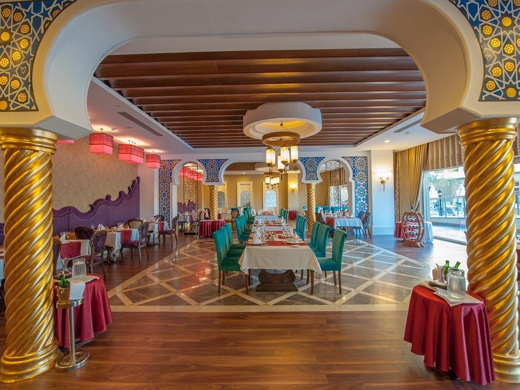 Основен ресторант, 4 а-ла карт ресторанта (мексикански, италиански, турски, рибен – 1 безплатно посещение на 1 от ресторантите при минимум 7 нощувки), 13 бара, 3 открити и 1 закрит (отопляем) басейн, аквапарк, сладкарница, СПА център, конферентна зала.