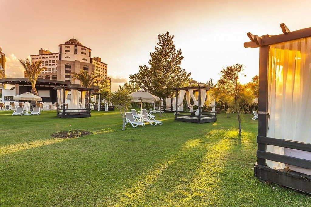 Основен ресторант (вегетарианска храна), 3 ресторанта a la carte (турски, рибен и международна кухня, с предварително записване за едноседмичен престой посещението на един от ресторантите е безплатно), 4 бара (един от тях работи 24 часа), дискотека, сладкарница, открит басейн с детска секция, закрит басейн (с подгряване през април и октомври), 3 водни пързалки, детски клуб, лекарски кабинет , SPA-център, фризьорски салон, търговски кът, пералня, конферентна зала.