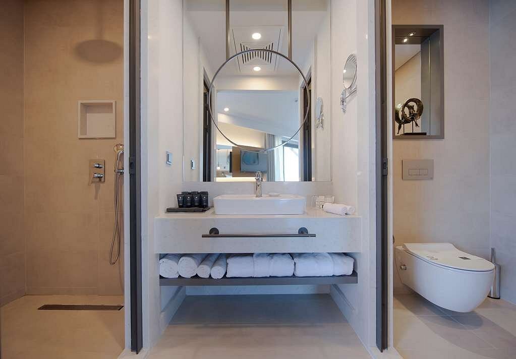 Стаи Main Building: Superior room land view (изглед суша – 30 м2), Superior Room Side Sea View (страничен изглед море – 30 м2), Superior Sea View (изглед море - 30 м2), Superior Family room (2 спални, 1 баня, изглед суша – 42 м2), Superior Corner room (изглед суша – 35 м2), Deluxe Terrace and Jacuzzi room (джакузи, тераса с кът за сядане – 40 м2, изглед градина или море – 80 м2), Suite room (спалня с джакузи, всекидневна, балкон – 10 м2, изглед море – 70 м2).