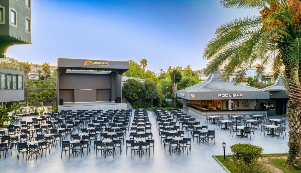 Разположение: Nova Park се намира в района Kumköy близо до Сиде, най-ексклузивният туристически център на Турция. Хотелът е на 4 км от Сиде, на 6 км от Манавгат, на 64 км от летище Анталия и на 70 км от центъра на Анталия. Разстоянието до морето е 200 м. Построен е през 1998 г. и е последно реновиран през 2023 г.