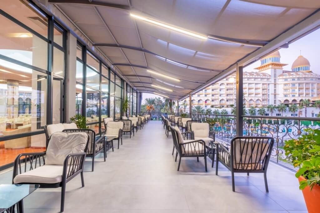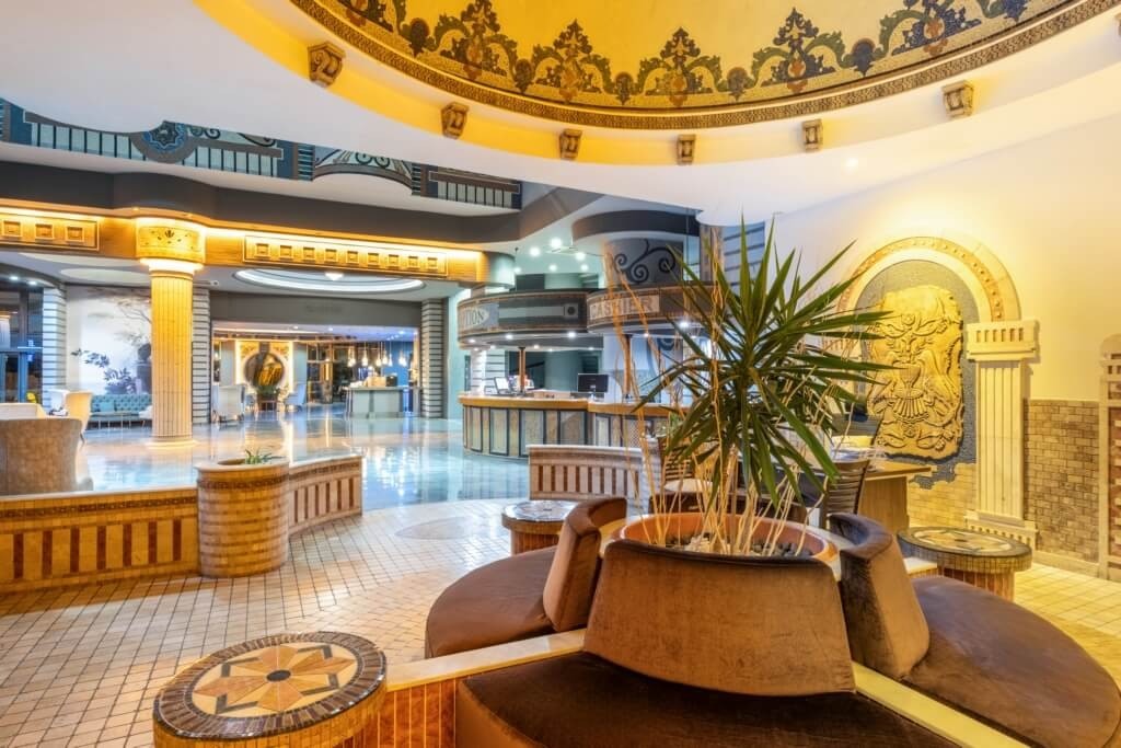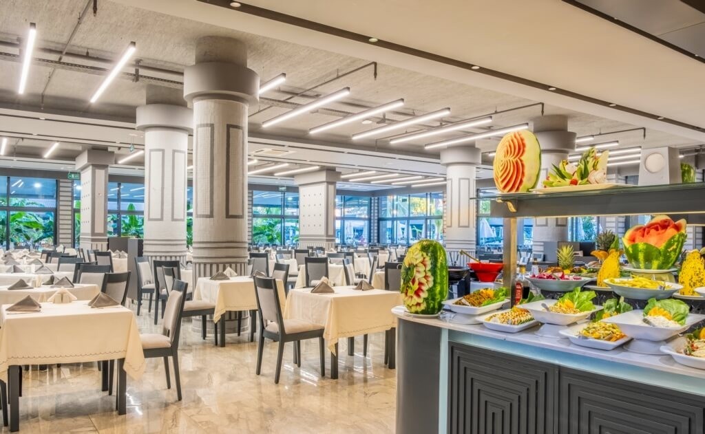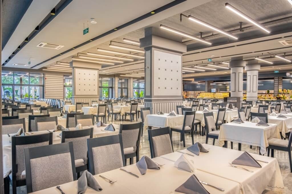 На територията на хотела: Основен ресторант, 2 а-ла-карт ресторанта - турски и италиански (едно безплатно помещение при минимум 7 нощувки) лоби бар, бар на басейна, снак бар, диско бар, открит и закрит басейн, конферентна зала.