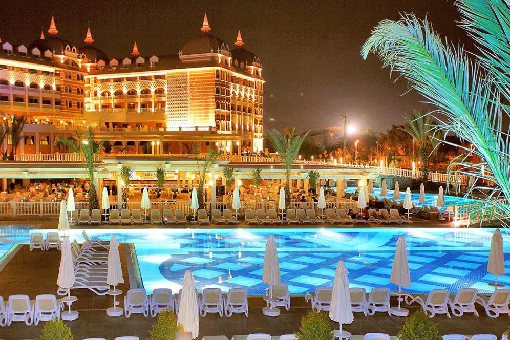 На територията на хотела: Основен ресторант, 5 а-ла-карт ресторанта (италиански, далекоизточен, мексикански, турски, рибен - срещу заплащане, с предварителна резервация), снек ресторант, сладкарница, 6 бара, диско бар, открит и закрит басейн, аквапарк, лунапарк, амфитеатър, СПА център, магазини, 4 конферентни зали.