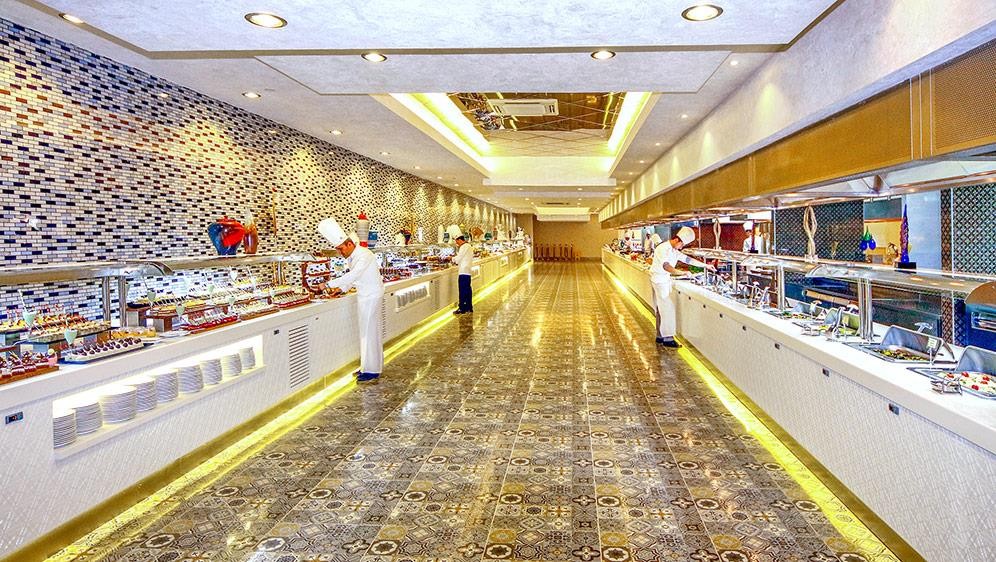 На територията на хотела: Основен ресторант, 3 а - ла - карт ресторанта (с предварителна резервация), 8 бара, 6 открити и 1 закрит басейн, 3 водни пързалки, магазини, SPA център, нощен клуб, конферентна зала. За децата: Детско меню, детски площадки, мини клуб (4-12 г.), 2 детски басейна, водни пързалки, мини дискотека, анимация, лунапарк, зоопарк. Безплатни услуги: Турска баня, сауна, фитнес, дартс, тенис на маса, плажен волейбол, аеробика, жива музика, анимация, интернет (в лоби). Платени услуги: Масаж, център за красота, фризьор, магазини, билярд, боулинг, интернет кафе, компютърни игри, химическо чистене, лекар, детегледачка, водни спортове, уроци по тенис, тенис на корт с осветление, скоростен интернет.