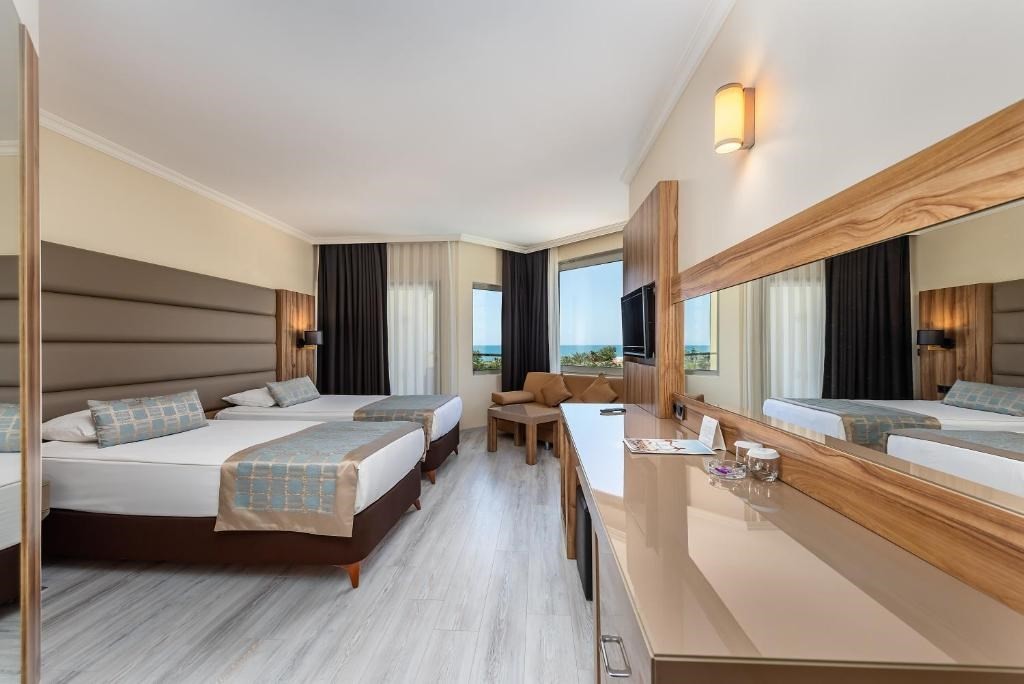 Разположение: Хотелът е открит през 2003 г. и е последно реновиран през 2022 г. с обща площ от 95 000 м2. Намира се на 75 км. от летище Анталия, в района на Сиде на 13 км. от Манавгат, на брега на морето.