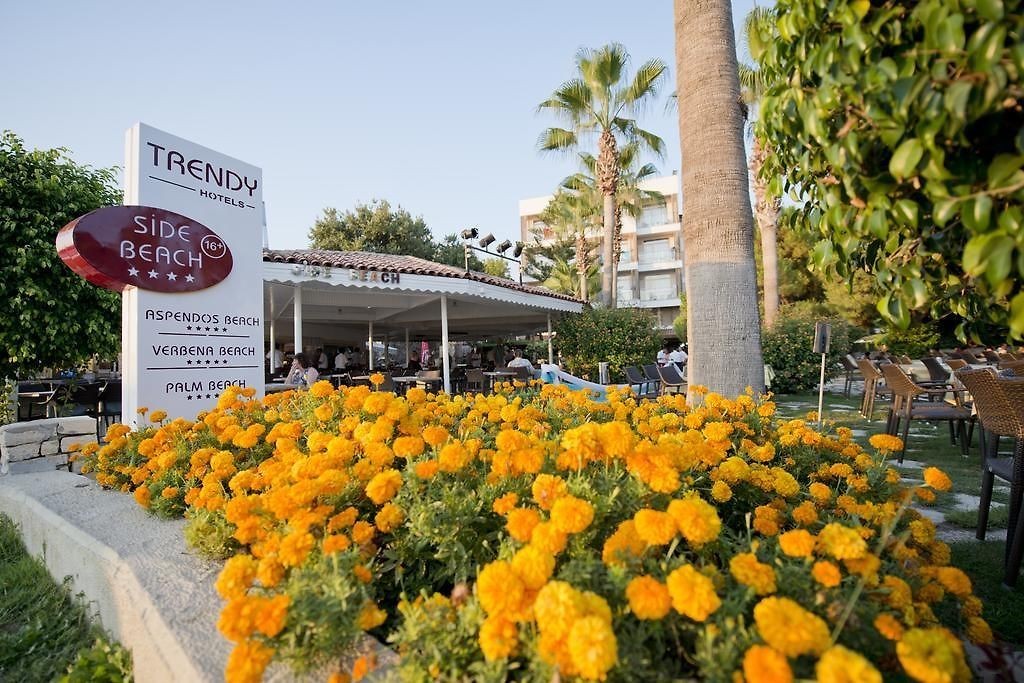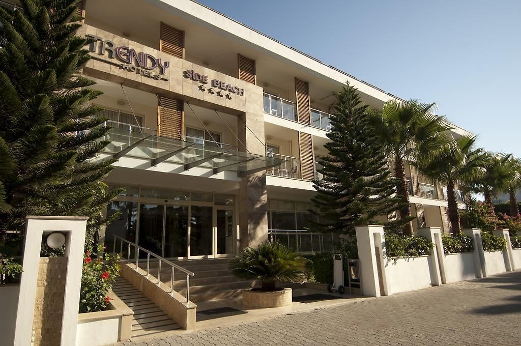 Trendy Side Beach Adults Only се намира в Сиде, на 100 метра от плажа Кумкой. Предлага помещения за настаняване със сезонен открит плувен басейн, безплатен частен паркинг, фитнес център и градина. На разположение на гостите има ресторант, частен плаж, сауна и турска баня. Предлага денонощна рецепция, летищен трансфер, общ салон и безплатен WiFi. Хотелът предлага климатизирани стаи с гардероб, електрическа кана, минибар, сейф, телевизор, балкон и самостоятелна баня с вана или душ. Всеки ден в Trendy Side Beach Adults Only се сервира халал закуска. На разположение на гостите има тераса. В този 4-звезден хотел можете да играете тенис на маса и дартс, а районът е популярно място за колоездене. Зеленият каньон е на 23 км от Trendy Side Beach Adults Only, а амфитеатърът Aspendos е на 33 км. Летище Анталия е на 69 километра.