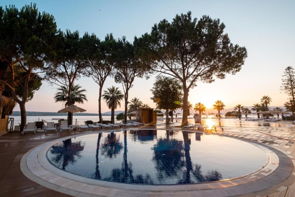 Хотелски комплекс Duja Didim Resort се намира в Дидим и предлага частен плаж, фитнес център и открит басейн. Осигурени са безплатен Wi-Fi и денонощна рецепция. Всяка стая разполага с климатик, балкон, кът за сядане и минибар. Самостоятелната баня е с душ и сешоар. Има изглед към градината и морето. Хотелът предлага ол инклузив обслужване, включващо закуска на шведска маса, обяд и вечеря в ресторанта на място. В цената са включени местни и вносни напитки. Гостите могат да релаксират в сауната или турската баня. На място се предлагат велосипеди и автомобили под наем. Детските съоръжения могат да играят безопасно на детската площадка или да се забавляват в детския клуб. Предлагат се и детегледачески услуги. Хотелът е на 6,1 километра от центъра на град Дидим и на 6 километра от автогарата на Дидим. Летище Милас-Бодрум е на 92,9 километра.