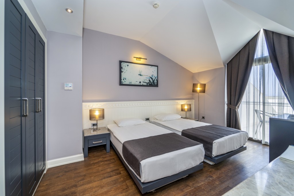 Хотелът разполага с 367 стаи, разпределени в двуетажни сгради и вили, някои от стаите са с директен достъп до басейн. Standart rooms (3), Family suit (4+1, две отделни спални и 1 всекидневна), Attic rooms (2), Direct Pool Access rooms (стаи с директен достъп до басейн). Всички стаи са оборудвани с климатик, телевизор, телефон, баня с душ/вана, сешоар, мини-бар (при настаняване вода, бира, сокове), сейф (безплатно), Wi-Fi интернет, балкон. Почистване на стаите - всеки ден, смяна на спално бельо – 3 пъти седмично.