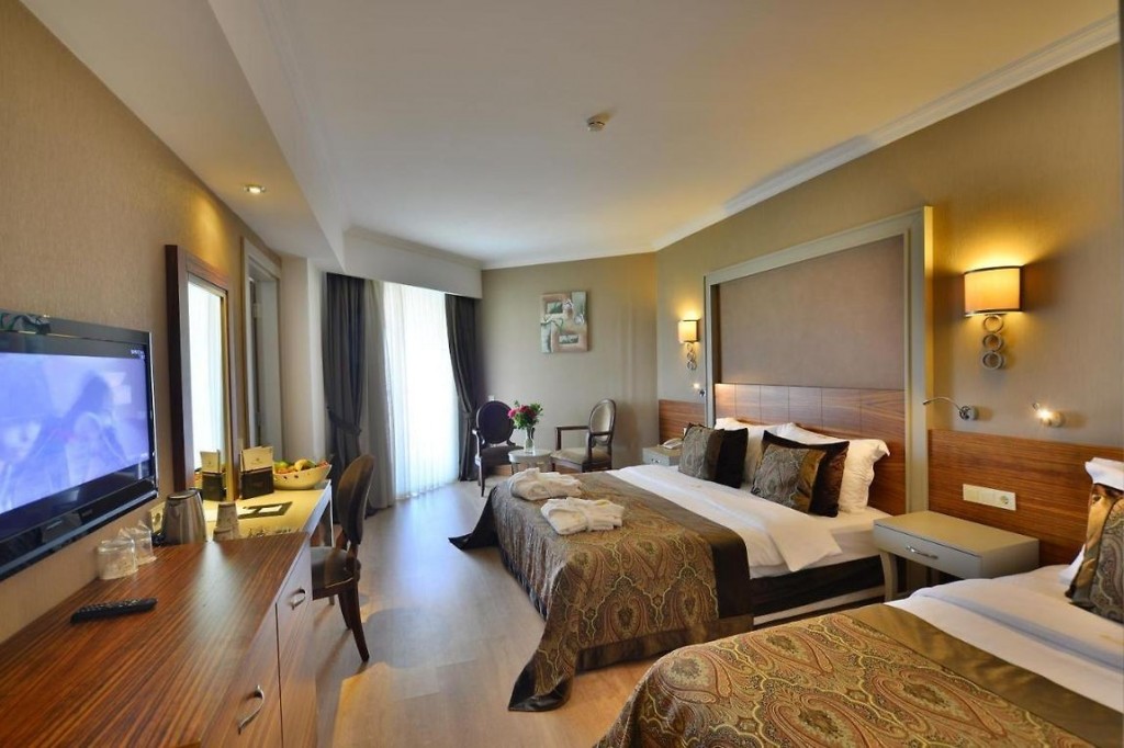 В стаите: Хотелът разполага с 170 стаи, всяка от които е оборудвана с климатик, LCD телевизор със сателитен приемник, телефон с директно избиране, баня с душ, сешоар, минибар, сейф срещу заплащане, сет за приготвяне на чай и кафе, ламинат, безплатен безжичен интернет, балкон. Ежедневно презареждане на минибара с минерална вода и безалкохолни напитки.