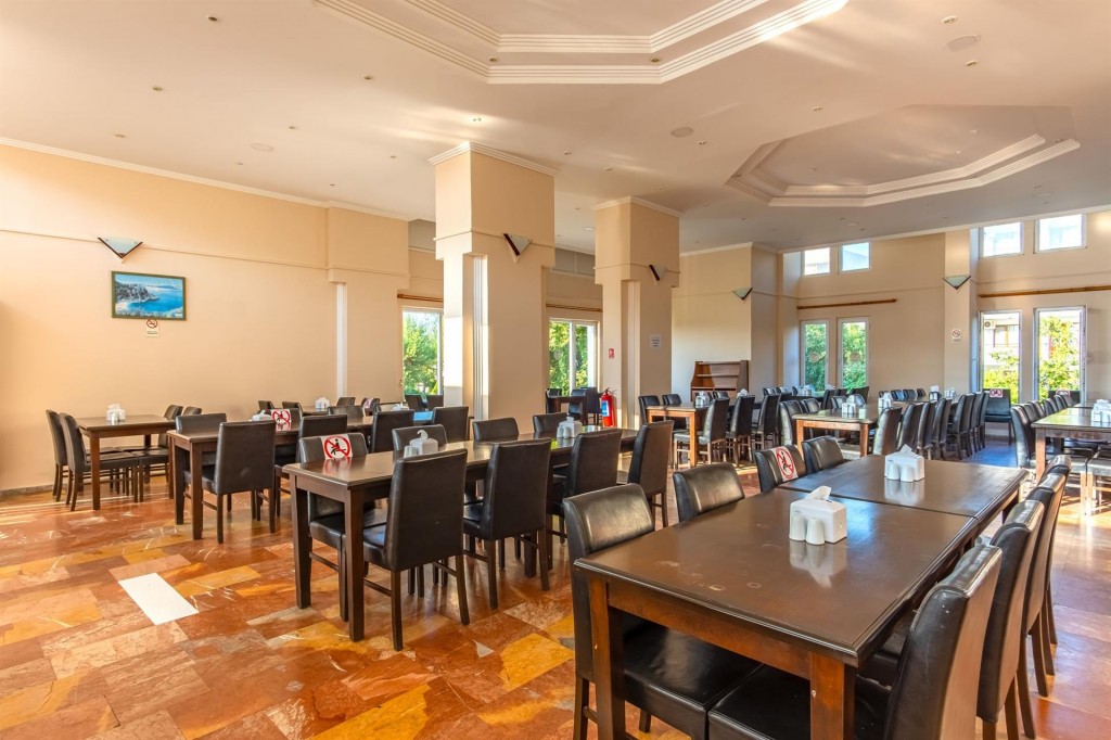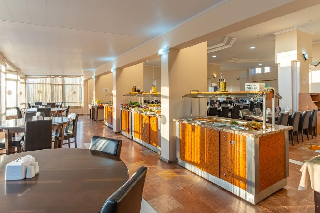 Oсновен ресторант, 2 бара , открит басейн, фитнес, магазини, паркинг.За децата: детски басейн, водна пързалка, мини клуб.Безплатни услуги: волейбол, мини футбол, тенис на маса, билярд, кино, лека анимация, Wi-Fi (в лоби)Платени услуги: вносни напитки, фрешове и бутилирани напитки, Rent a Car, велосипеди под наем, фризьор, лекар, химическо чистене, сейф, водни спортове.