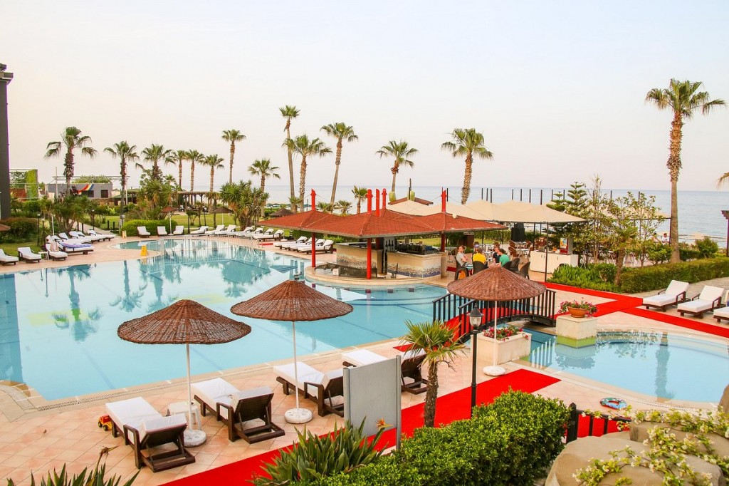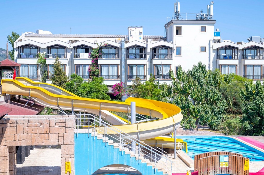 На територията на хотела: Хотелът разполага с открит басейн 356 кв.м., вътрешен басейн 106 кв.м., водни пързалки, основен ресторант, един a'la carte ресторант (рибен, 1 път седмично с резервация), 4 бара, амфитеатър, пералня (срещу заплащане), безплатен Wi-Fi в целия имот, обмяна на валута, магазин и две конферентни зали (200 кв.м. и 30 кв.м.).