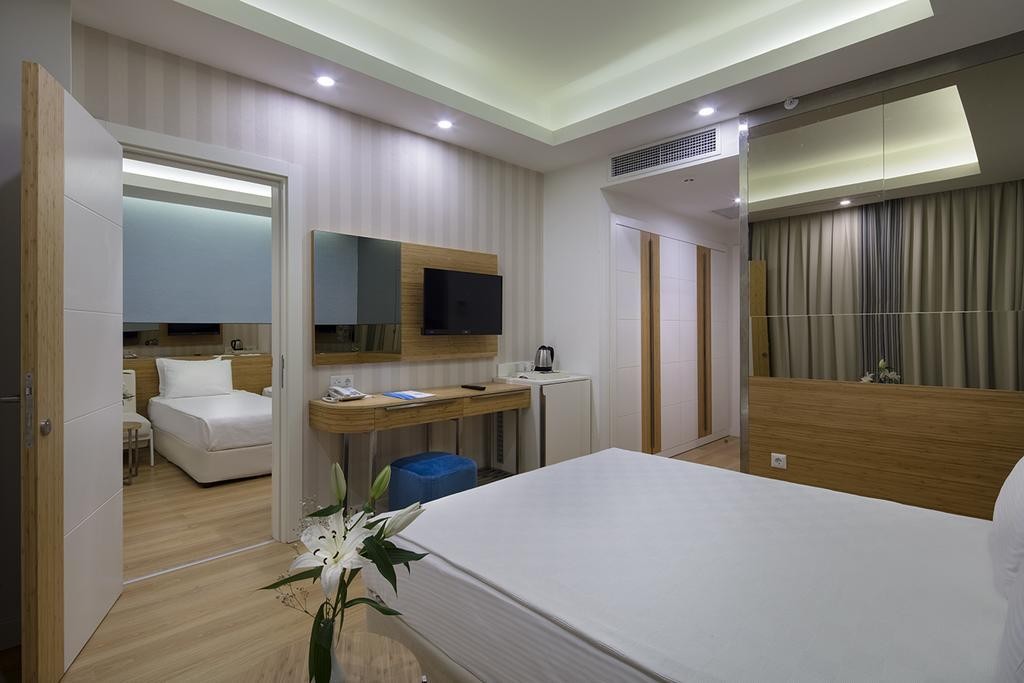 Standard Room (ROH): - 22 м2. Всички стаи са оборудвани с баня (душ), WC, телефон, сейф (безплатно), минибар, сателитна телевизия, сешоар, VRV климатична система. Изглед към сушата или морето. За настаняване 2+1, диванът се използва като легло за дете.
