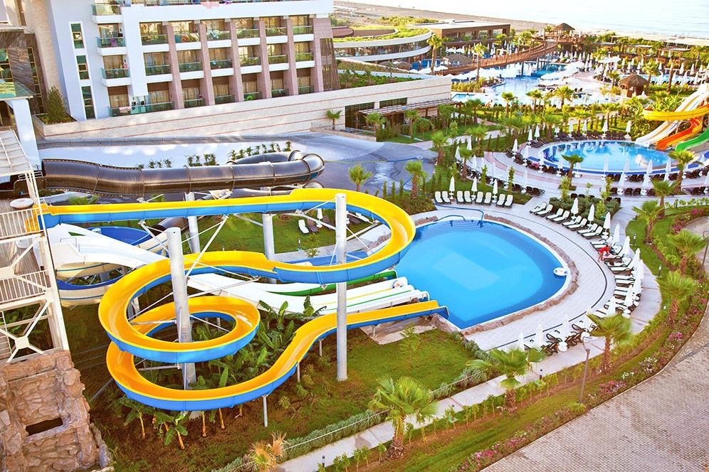 Основен ресторант, а-ла-карт ресторант(италиански, интернационален)- съгласно концепцията на хотела, 3 бара, витамин бар, диско бар, външен и вътрешен басейн, аквапарк, водни спортове, СПА център, сауна, хамам, фитнес, билярд, кино салон, тенис на маса, баскетбол, анимация, магазини, WIFI- съгласно концепцията на хотела.