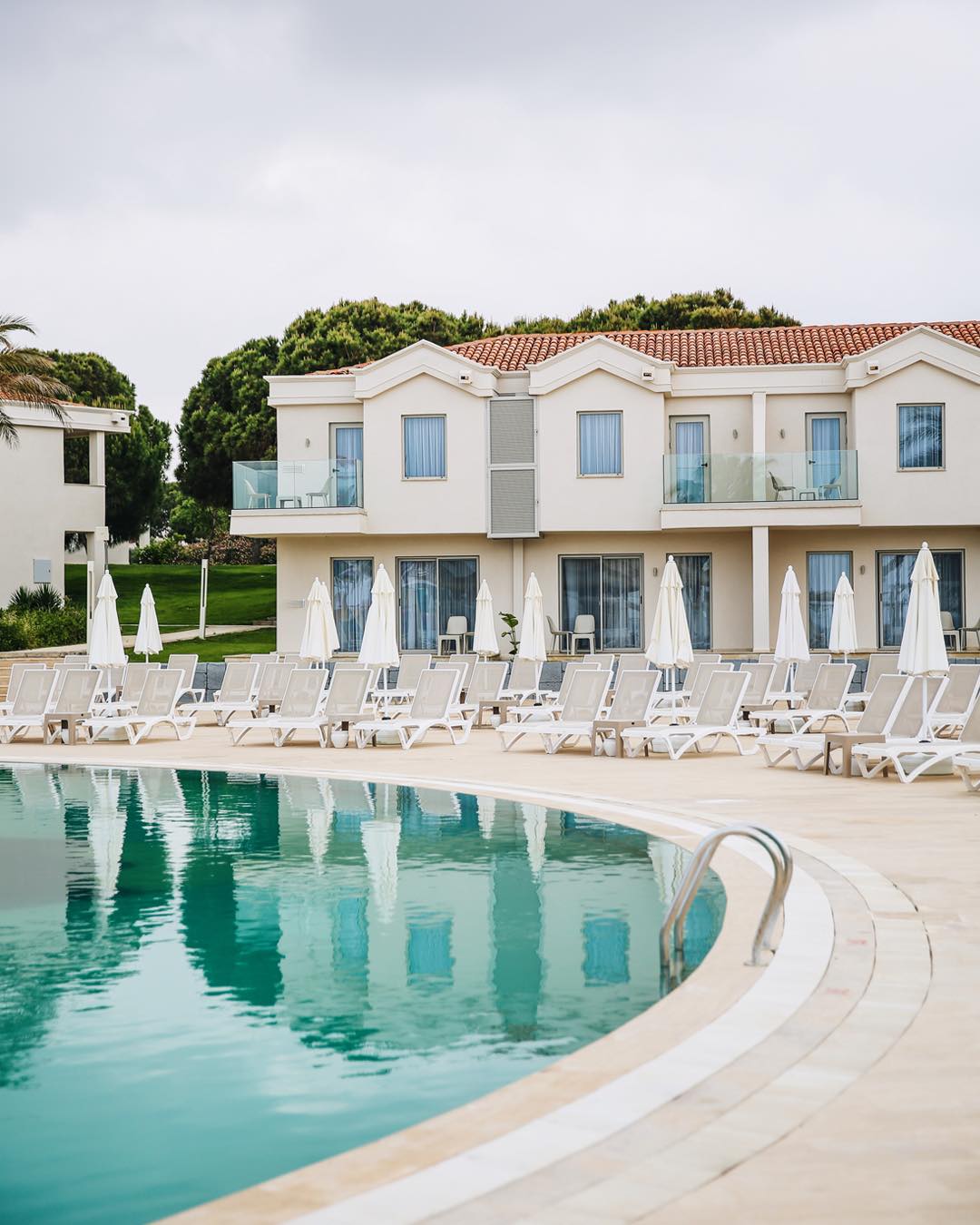 Стаи Main Building: 116 Standard Land View (25 м2 – изглед към сушата), 58 Family Suite Land View (50 м2 – спалня и всекидневна, изглед планина), 64 Family Suite Sea View (50 м2 - спалня и всекидневна, изглед море), 16 King Suite (98 м2 – спалня и всекидневна, баня с джакузи - изглед градина, изглед море).