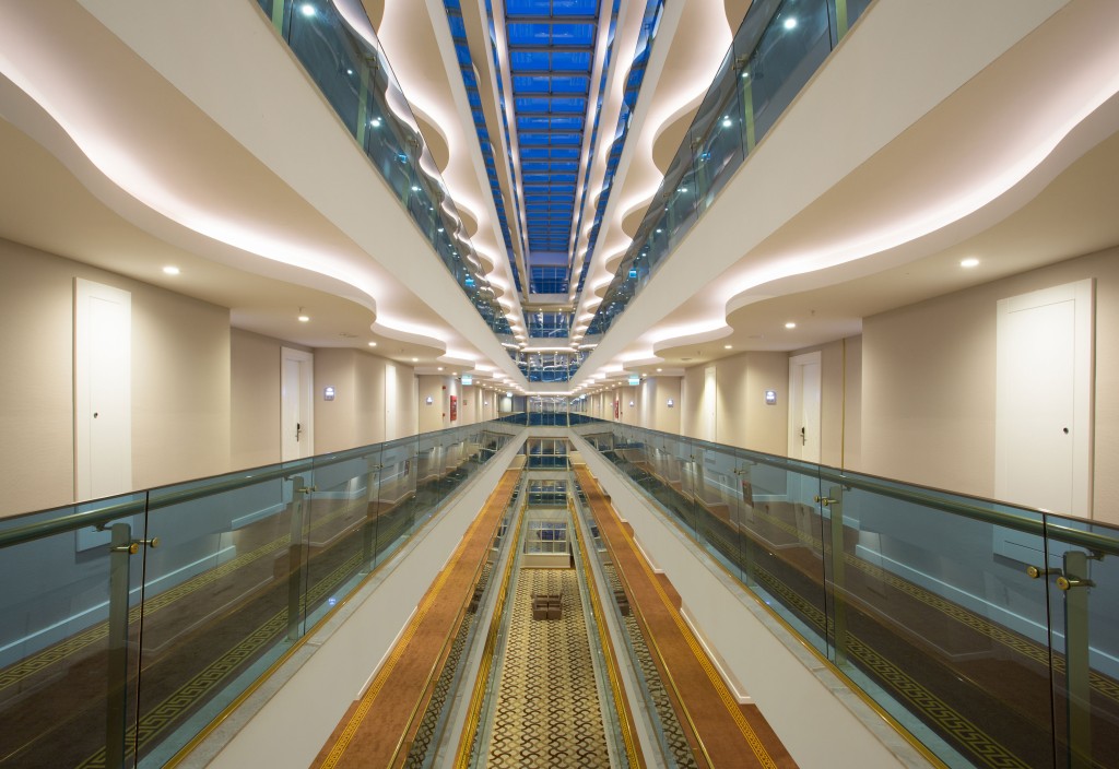 В стаите: Хотелът се състои от една основна 7-етажна сграда, оборудвана с четири панорамни асансьора и разполага с общо 378 стаи, разпределени в няколко категории. Всички стаи разполагат със система за електронни ключове, подова настилка от ламинат, детектор за дим, сет за приготвяне на кафе и чай, сейф (безплатно), климатик, минибар ( ежедневно/безплатно зареждане с вода и безалкохолни напитки), LCD телевизор с музикални и сателитни канали, безжичен интернет WiFi, баня с душ, принадлежности за баня, огледало за грим, сешоар, балкон, телефон.