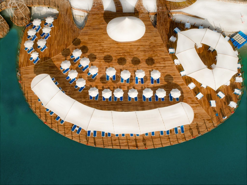 Собствен, пясъчен плаж с дължина от 1200 м., 1 платформа - чадъри, шезлонги, матраци и плажни кърпи - безплатно.