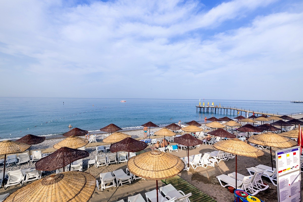 Собствен, пясъчно-чакълест плаж. Чадъри, матраци, шезлонги - на плажа и при басейна – безплатно. Плажни хавлии - платено. Шатри на плажа - платено.