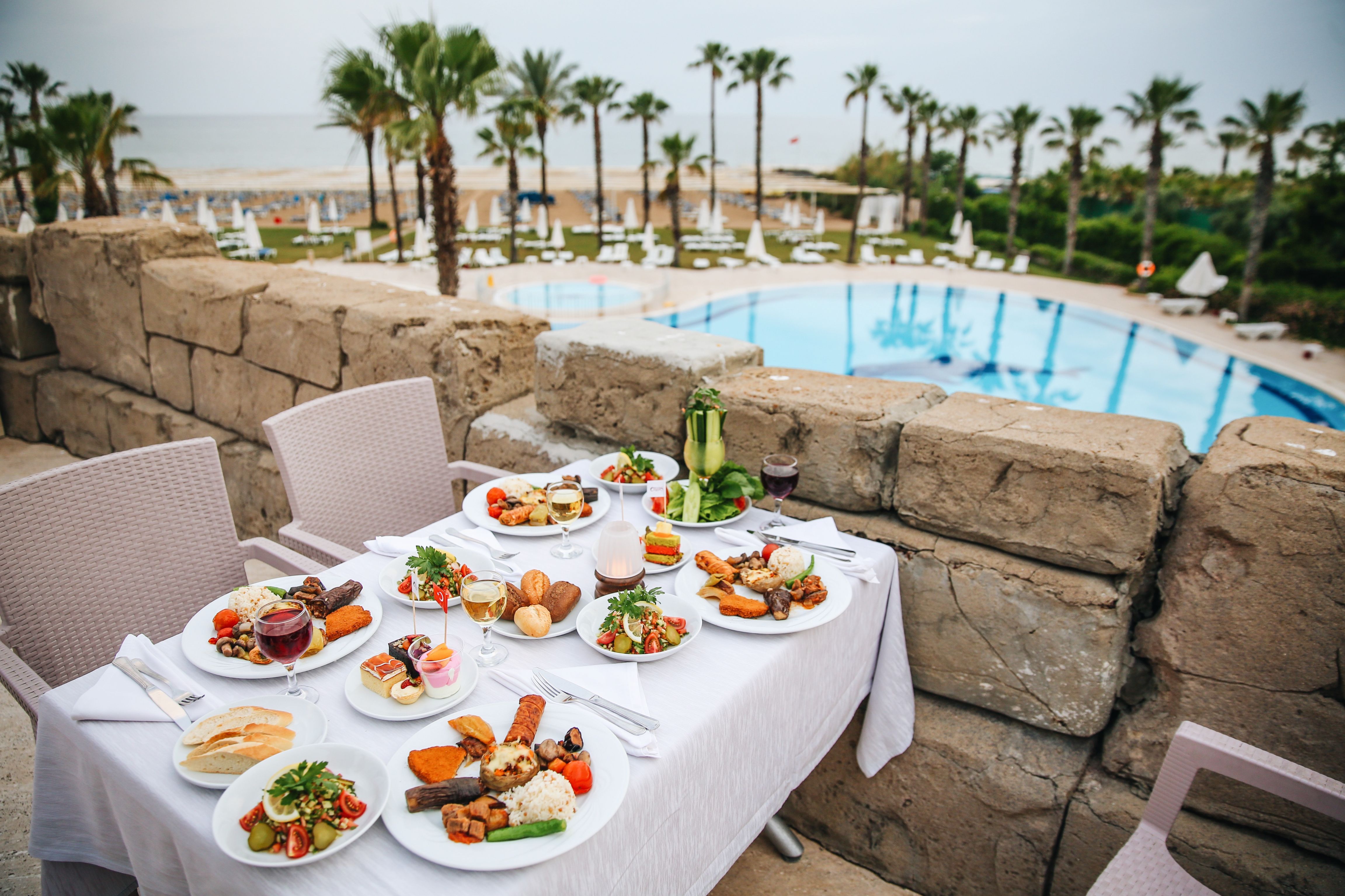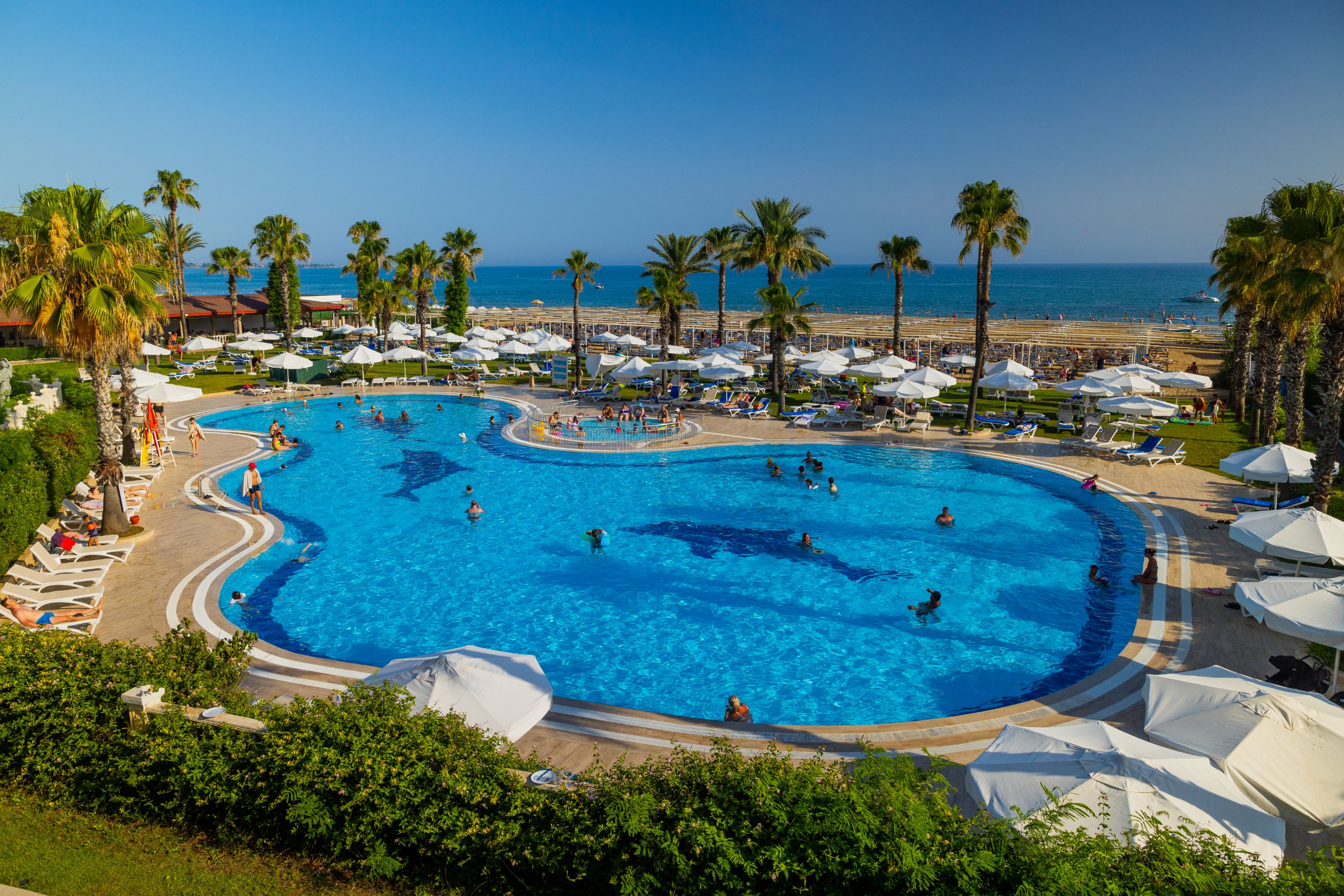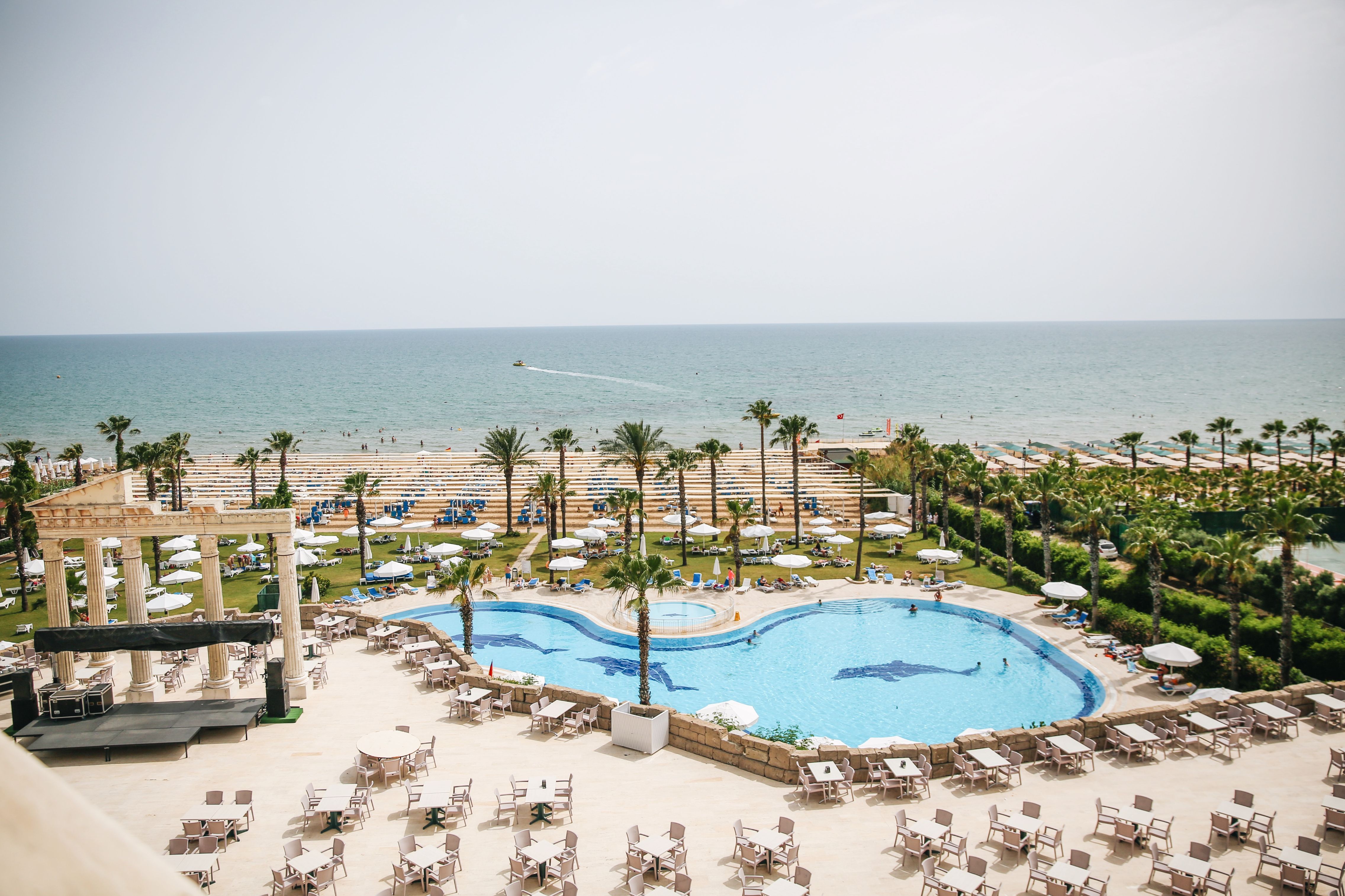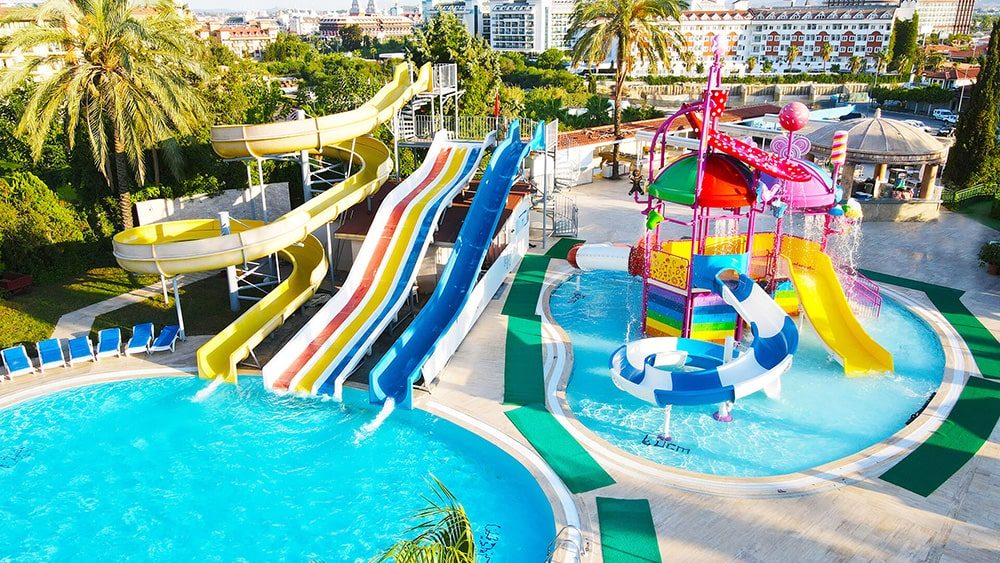 Основен ресторант, 3 а-ла карт ресторанта (турски, италиански и рибен), лоби бар, бар при басейна,открит басейн(376 кв.м.), закрит басейн (80кв.м.), тенис на корт, фитнес център, сауна, турска баня, масаж, салон за красота, анимация, СПА център, водни спортове За децата: детска площадка, 2 детски басейна, 3 водни пързалки, мини клуб (4-12г.), детско столче в ресторанта, детегледачка (срещу заплащане) Плаж: собствен. Чадъри, матраци и шезлоги на плажа и при басейна - безплатно.