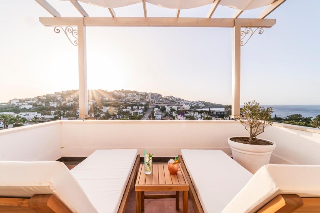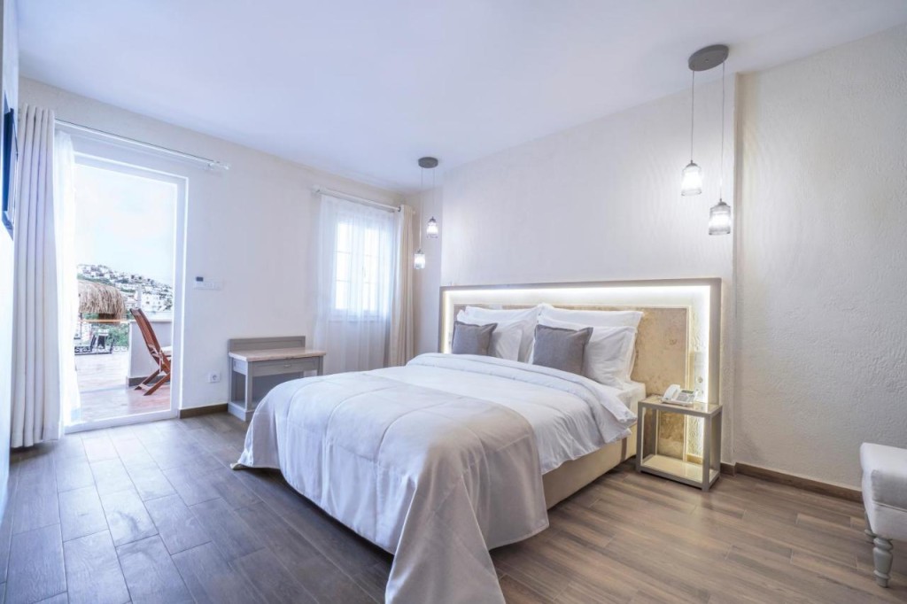 Стаи: Със светлото и модерно, вдъхновено от изкуството и културата, всяка стая е напълно реновирана през 2021 г. и всички имат фантастична гледка към морето. Стаите са оборудвани с тераса/ балкон, телевизор, WiFi интернет, сет за приготвяне на кафе и чай, баня с душ, тоалетни принадлежности. Апартаментите разполагат с кафе машина, както и отделна дневна зона.