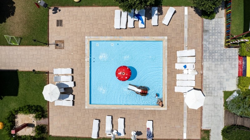 На територията: основен бюфет ресторант, 4 бара, 2 външни басейна, детска площадка, мини клуб за деца от 4 до 12 г.,билярд, тенис на маса, дартс, водно поло, спа център, водни спортове, интернет.