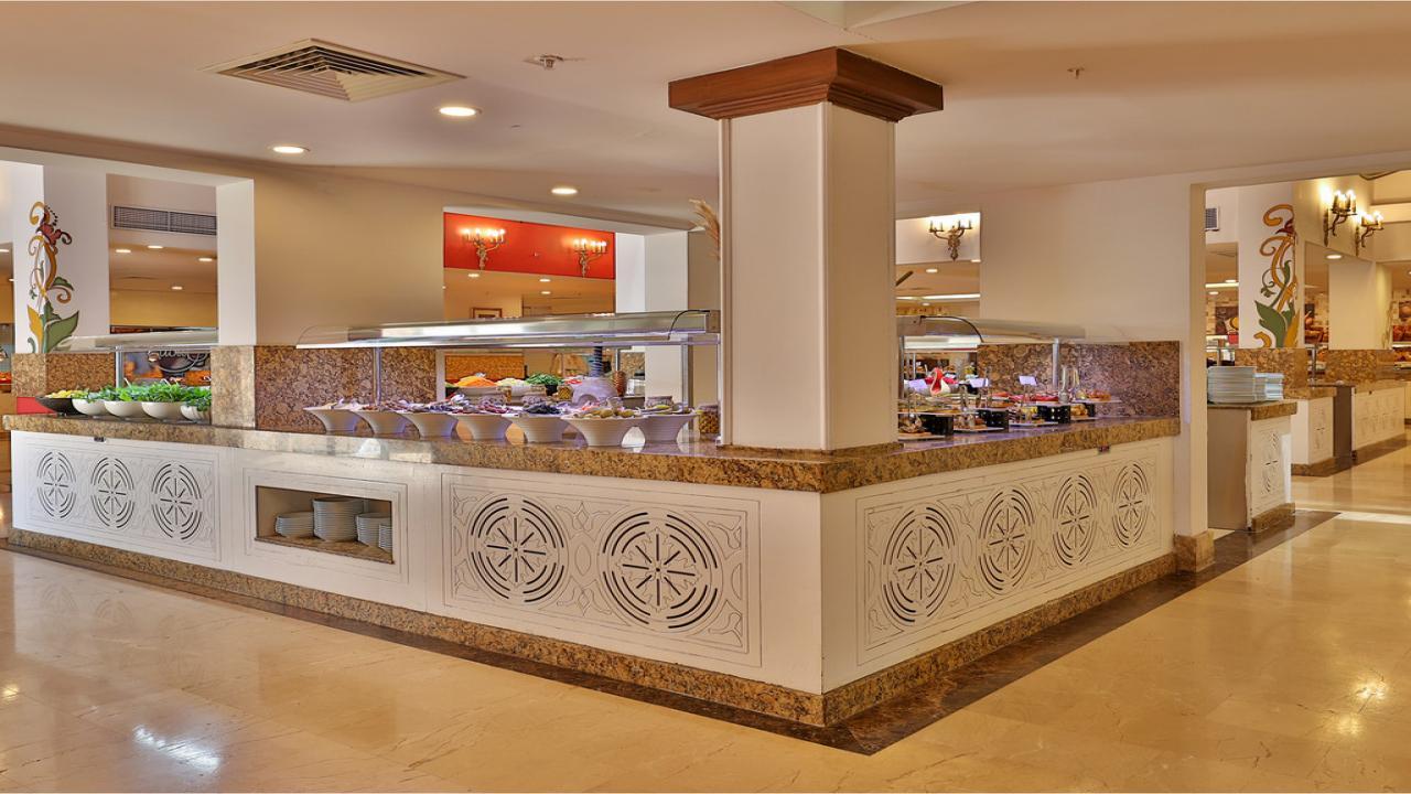 Главният ресторант в хотела сервира закуска на блок-маса от 07:00 до 10:00 часа, късна закуска от 10:00 до 11:00 часа, обяд на блок-маса от 12:30 до 14:30 часа и вечеря на блок-маса от 19:00 до 21:00 ч.