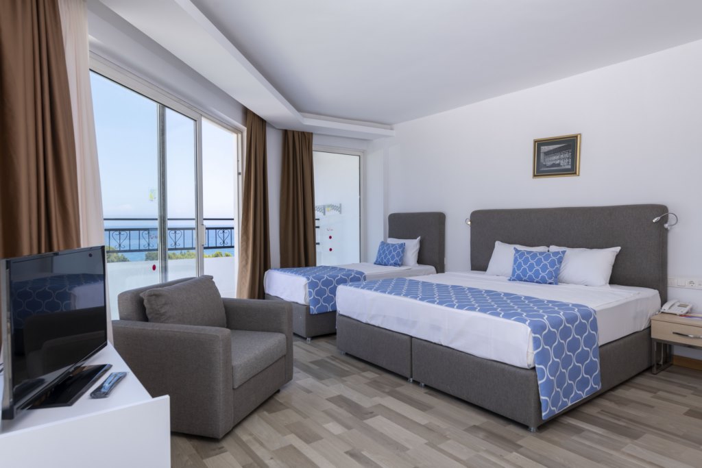 Стаи Main Building: 75 Land View Standard room (изглед суша, 20-23 м2), 75 Sea View Standard room (изглед море, 20-23 м2), 30 Superior room (22-35 м2), 12 Family room (2 спални, 1 баня – 22-35 м2).