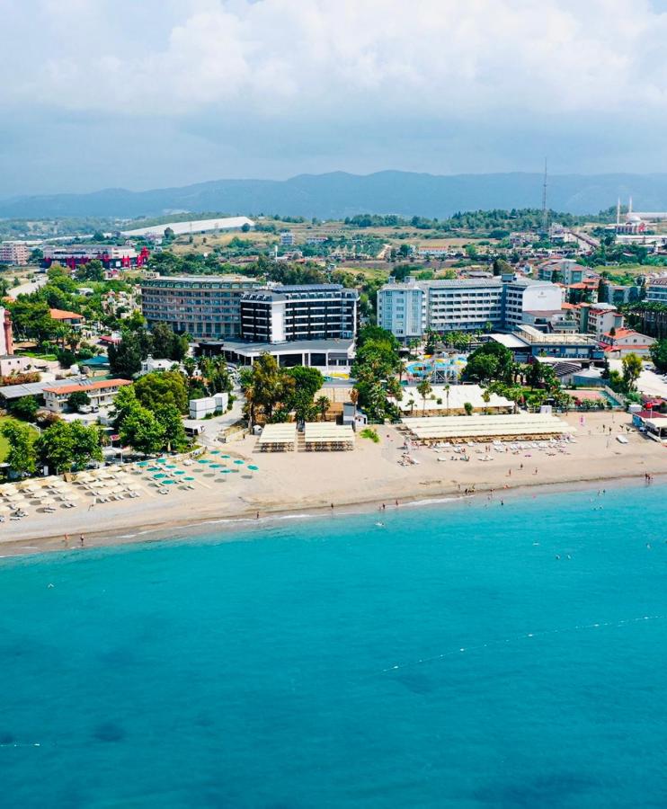 Намира се на 92 км от летище Анталия, на 100 км от центъра на Анталия, на 32 км от центъра на Алания, на 100м от брега на морето, на обща площ от 6 250 м2. Реновиран 2023 г.